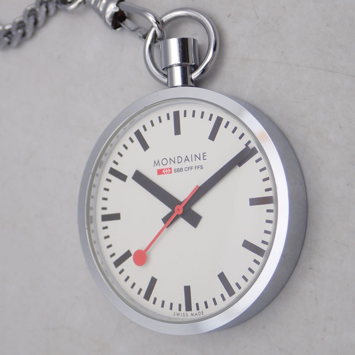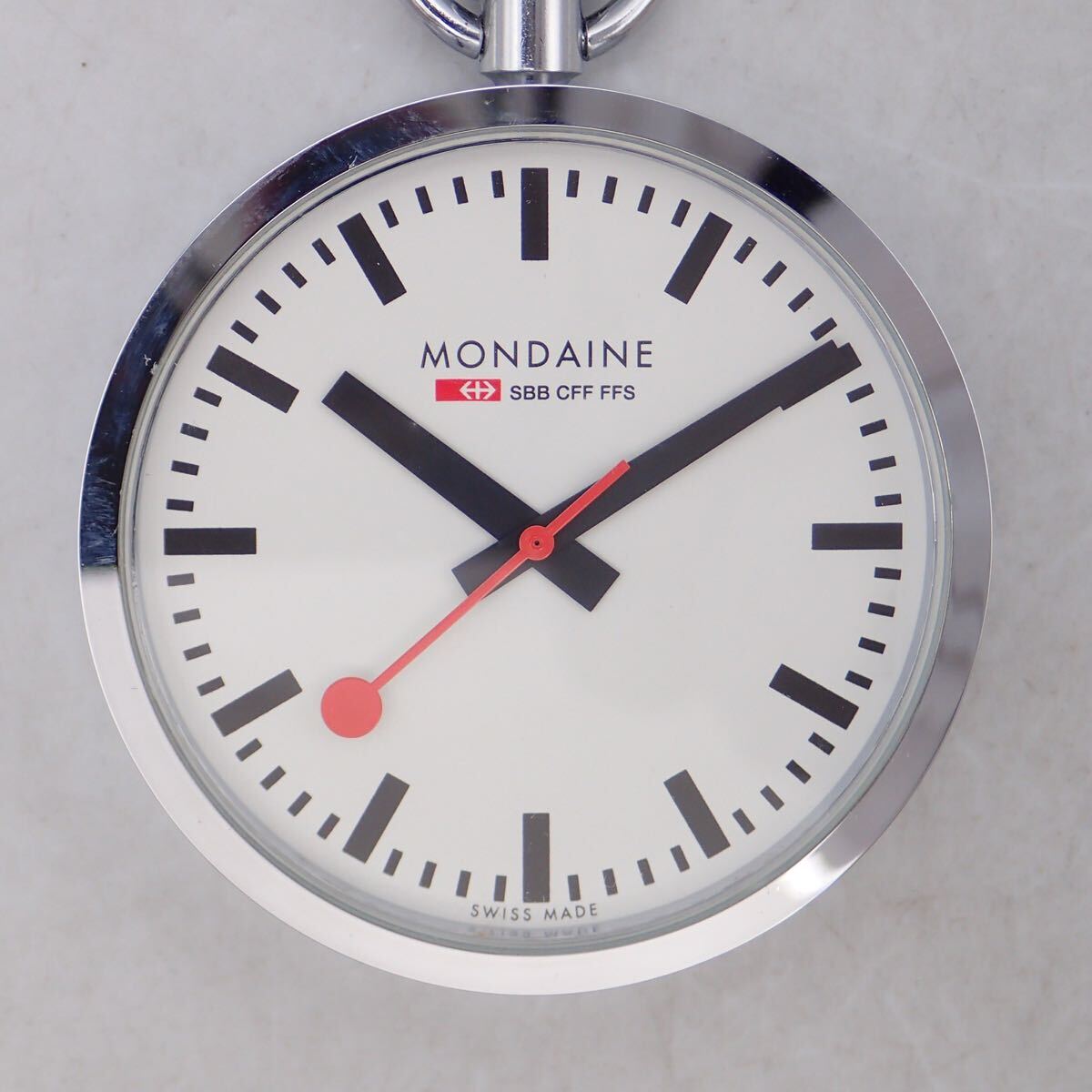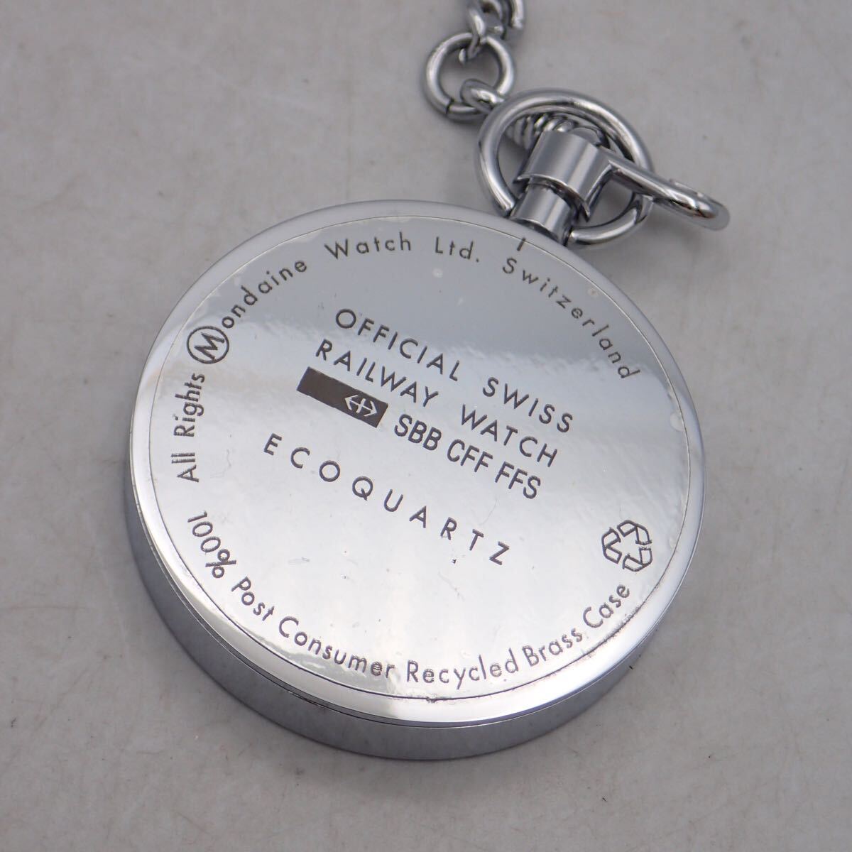 Product name: お06439/MONDAINE モンディーン/クオーツ/懐中時計/鉄道時計/SBB CFF FFS/チェーン・ケース・取扱説明書・保証書付/ジャンク