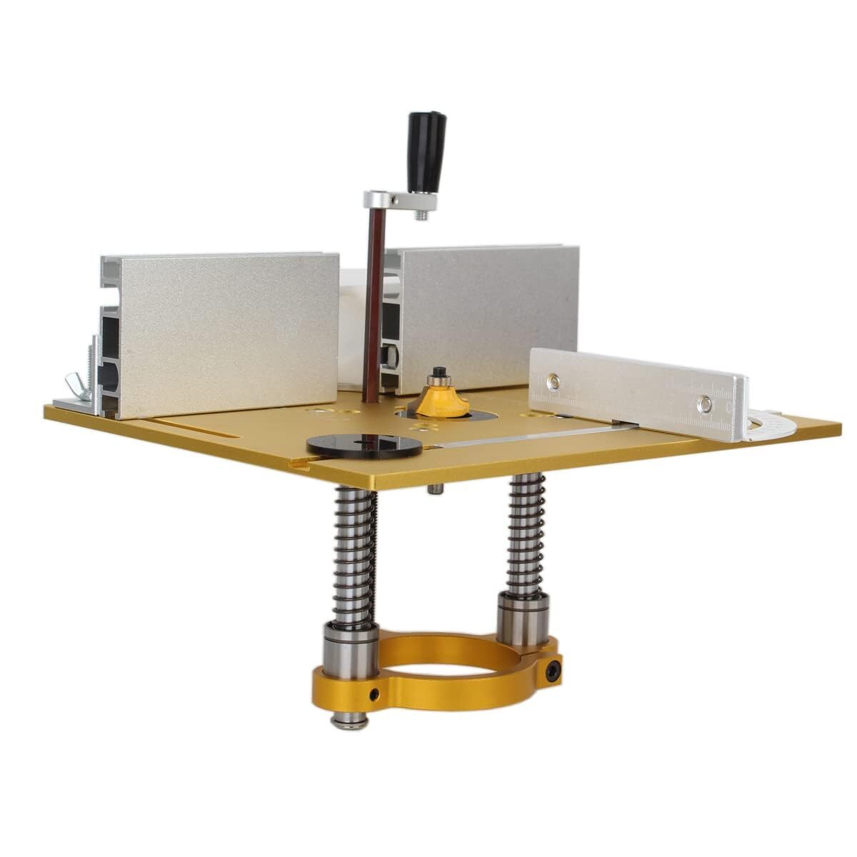 FTtool アルミ製 ルーターテーブル インサートプレートキット プッシュブロック 0-180度調整角度器付属 トリマー 彫刻機対応 耐摩耗性 DIY/大工道具 ゴールド
