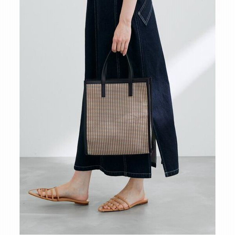 春夏らしい軽さと抜け感のあるメッシュトートバッグ。A4サイズのファイルやPCなどが収まる、計算されたサイズ感もポイント。側面や底面にフェイクレザーを使用する事で、デザインとしてだけでなく、きちんと自立するように仕上げたこだわりも。