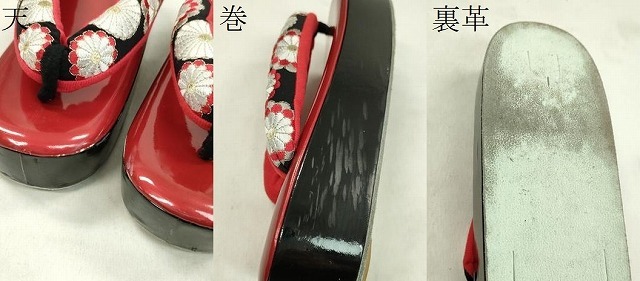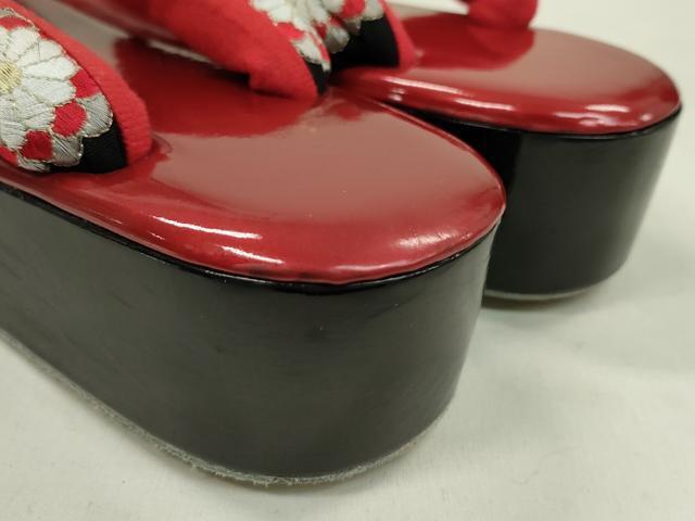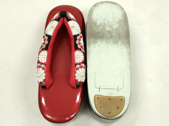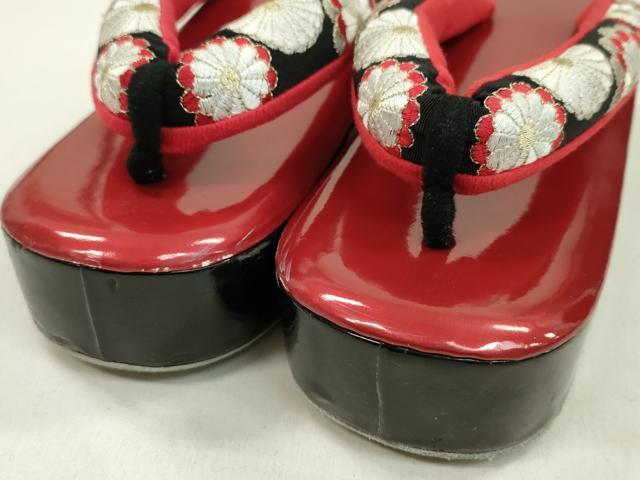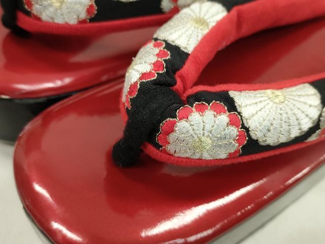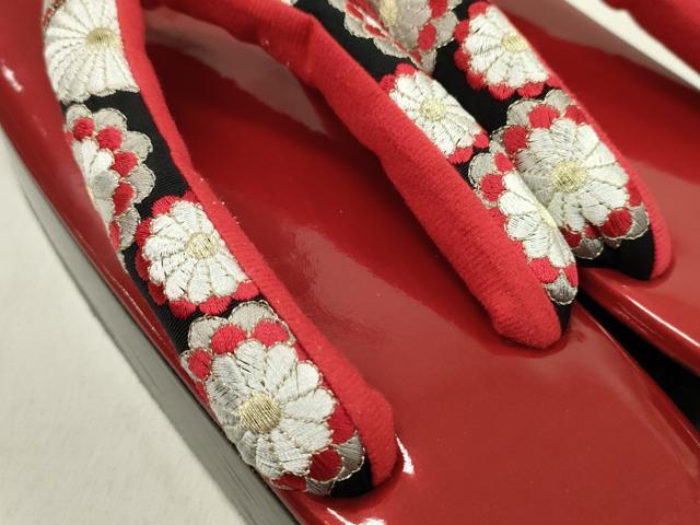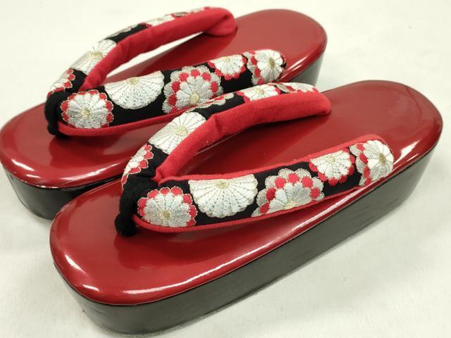 Product name: 平和屋着物▼和装小物 草履 厚底 刺繍 菊 赤×黒 金糸 小判型 逸品 CAAQ8139ju