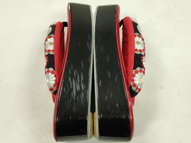 平和屋着物▼和装小物 草履 厚底 刺繍 菊 赤×黒 金糸 小判型 逸品 CAAQ8139ju