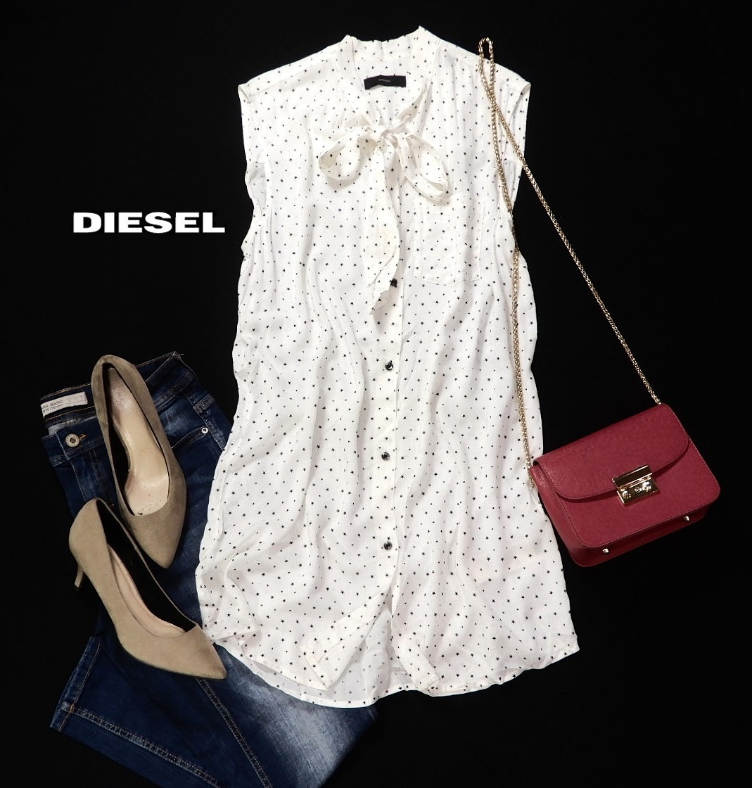 ディーゼル DISEL 可愛い☆スター 星柄 リボン ボウタイ ノースリーブ ブラウス xs