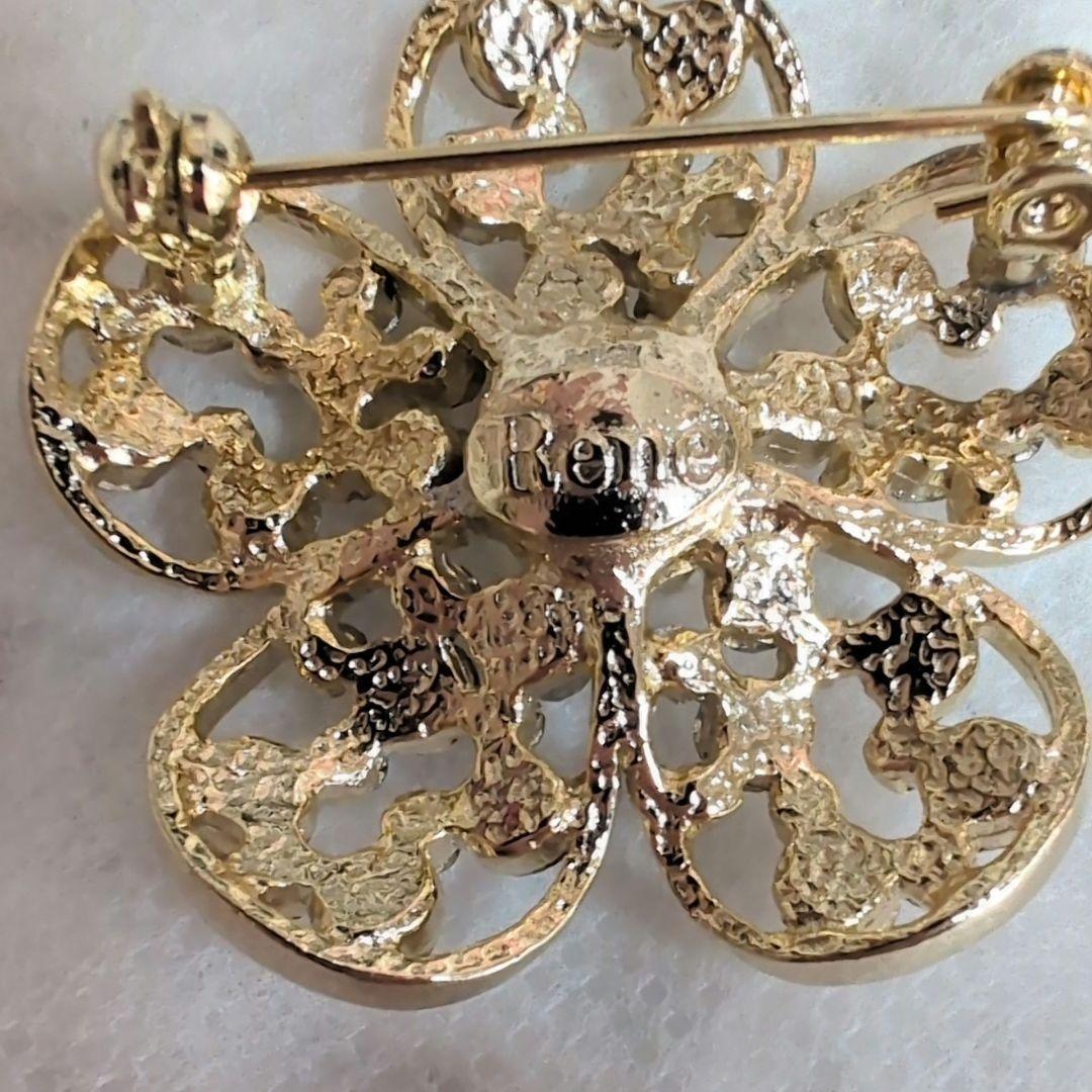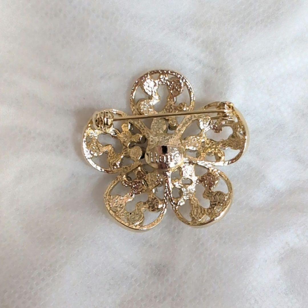 【未使用級/極美品】Rene ルネ パール フラワー ブローチ ビジュー お花 ゴールド フォーマル 結婚式 二次会 式典 パーティー ピン