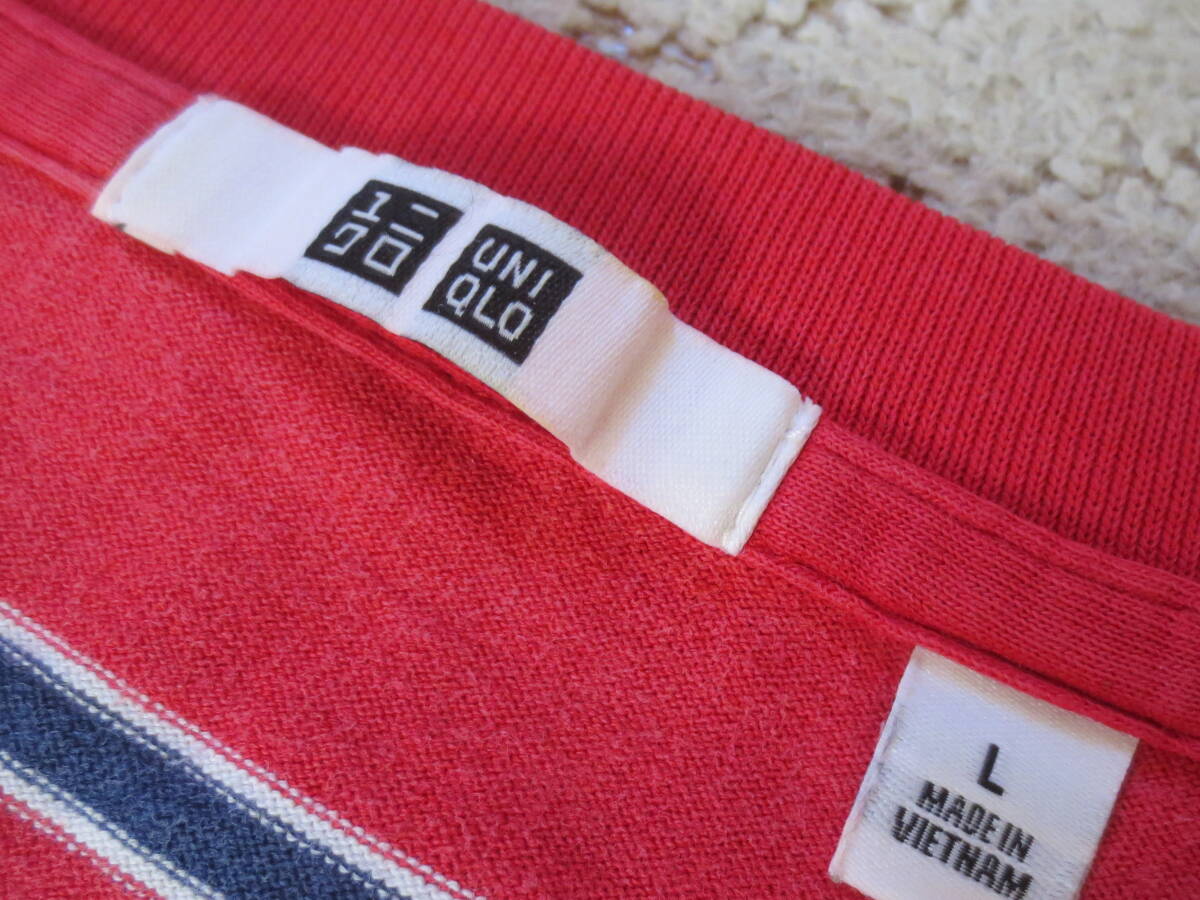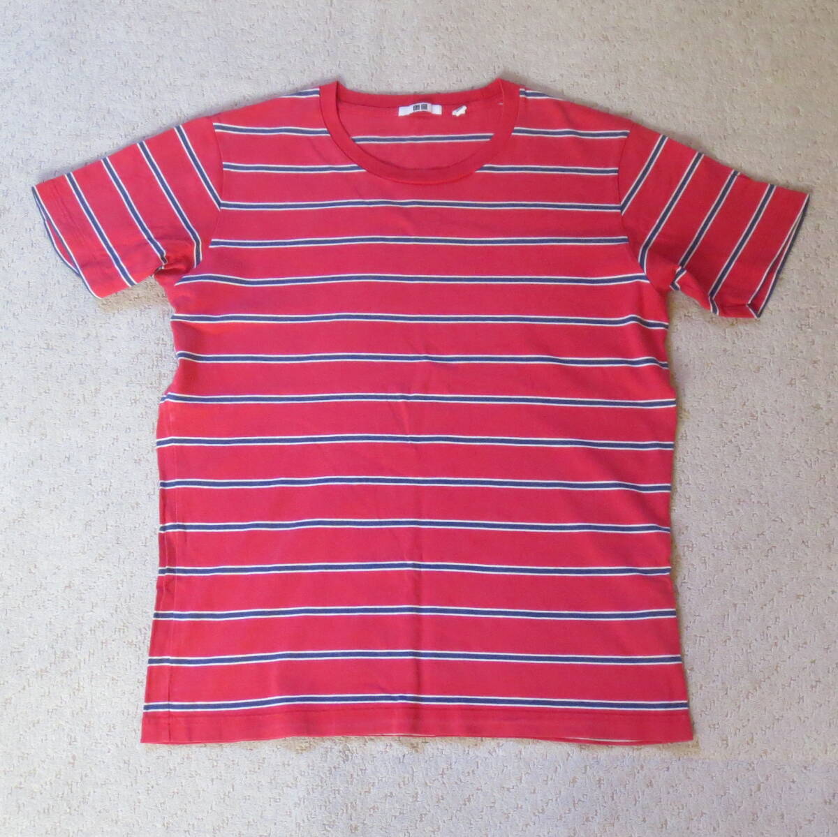 ユニクロ Lサイズ 綿100% Tシャツ 赤色白色紺色 縞模様