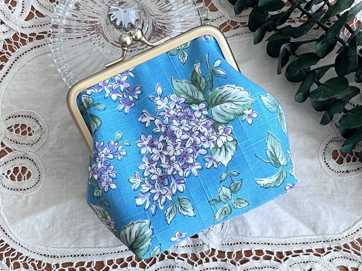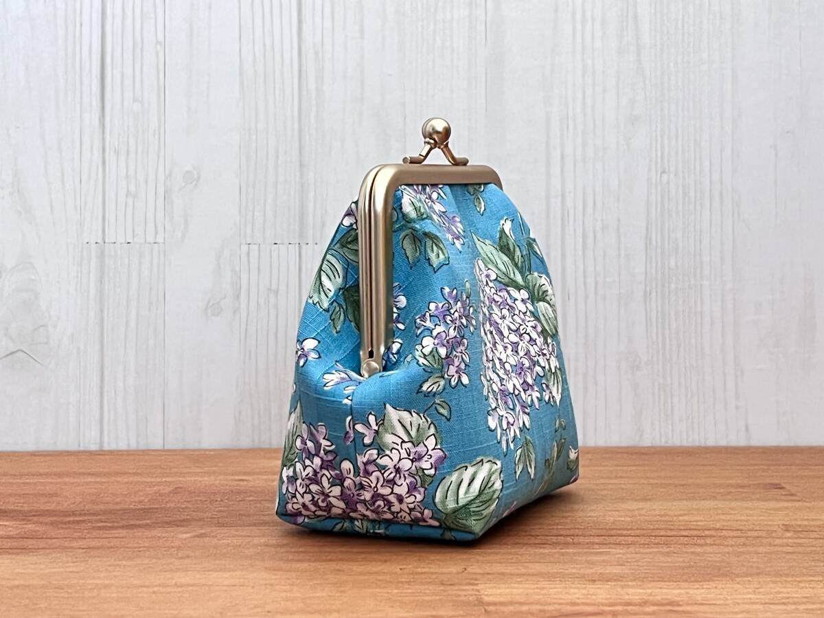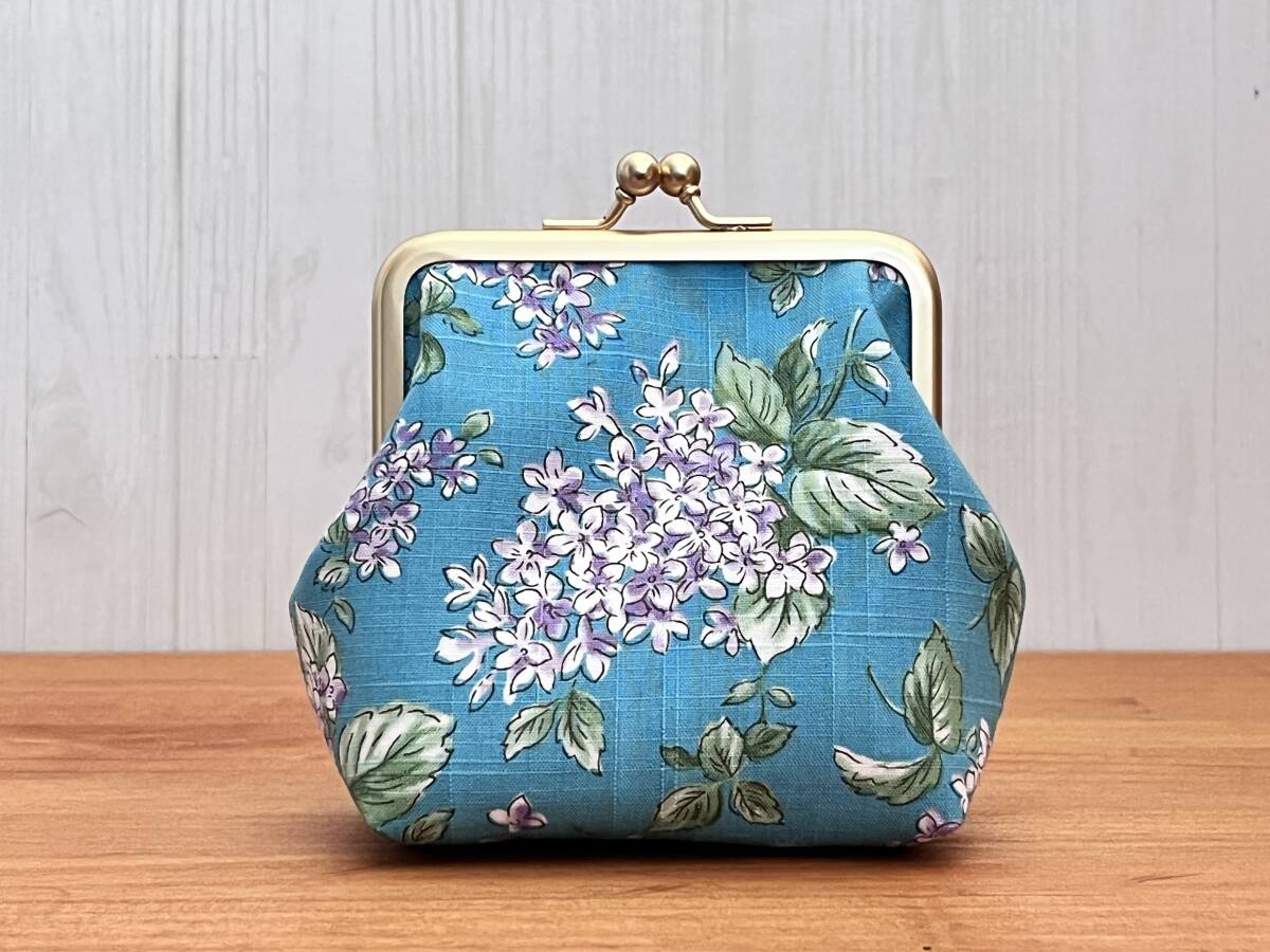 Product name: ハンドメイド+人気作家+スラブクロス+ライラック+ブルー+花柄+Liberty+ぷっくり+がま口ポーチ+コスメ+HH+c&s