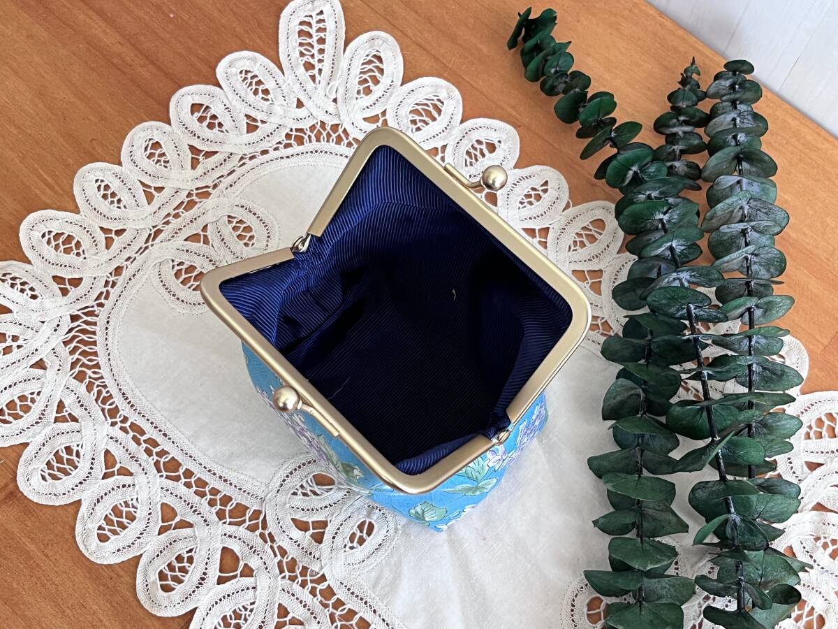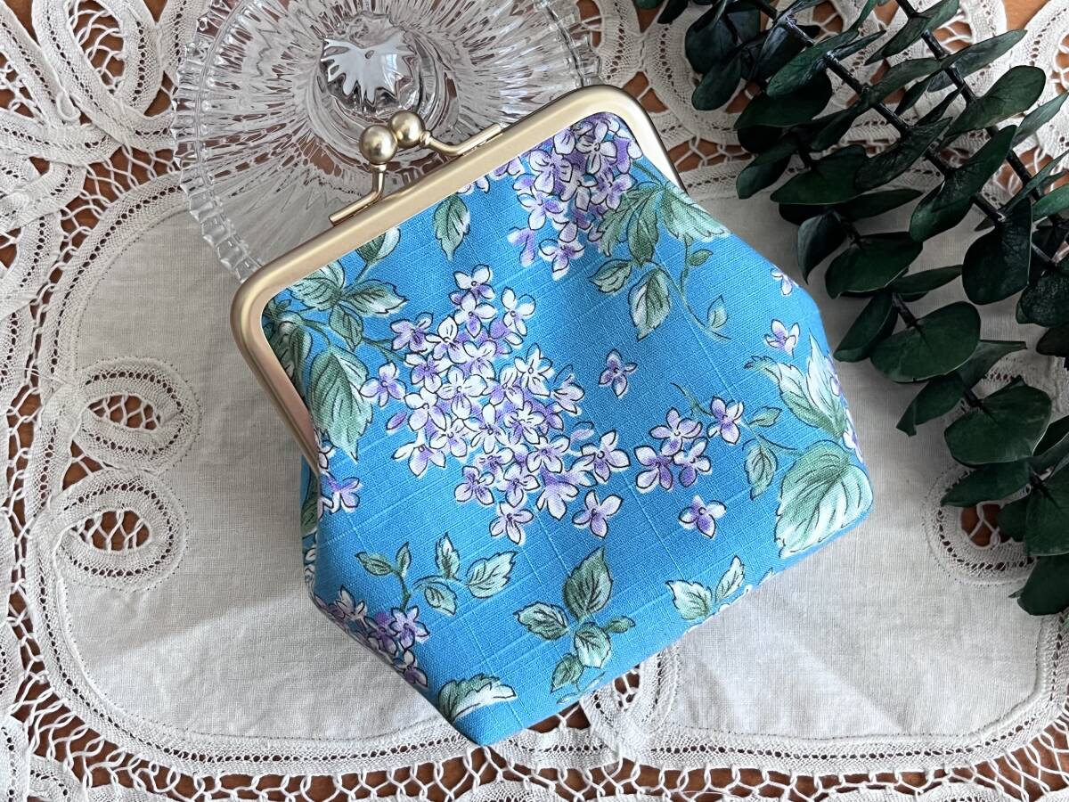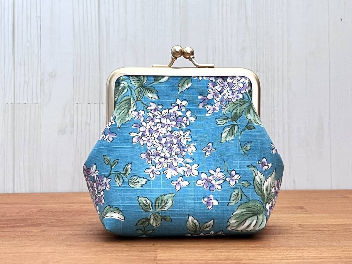 Product name: ハンドメイド+人気作家+スラブクロス+ライラック+ブルー+花柄+Liberty+ぷっくり+がま口ポーチ+コスメ+HH+c&s