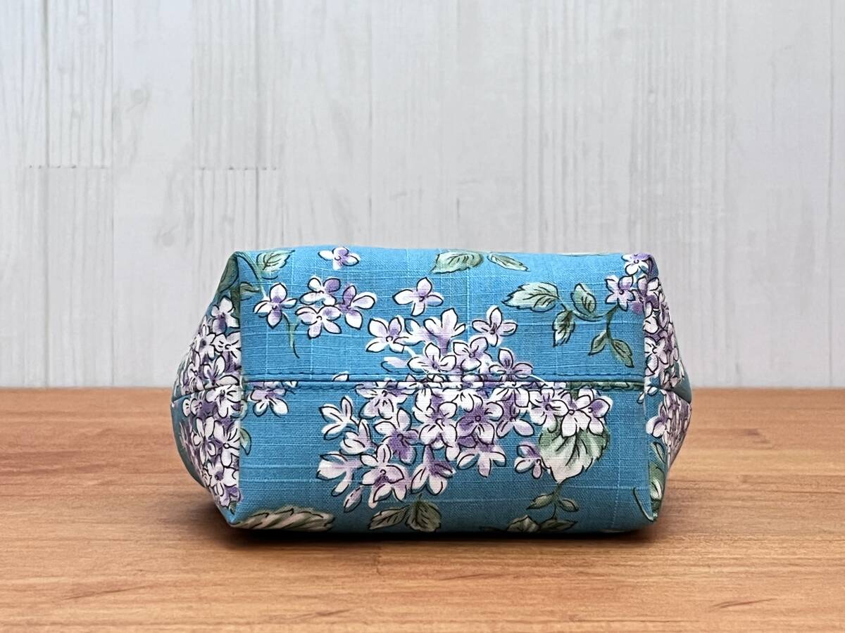 ハンドメイド+人気作家+スラブクロス+ライラック+ブルー+花柄+Liberty+ぷっくり+がま口ポーチ+コスメ+HH+c&s