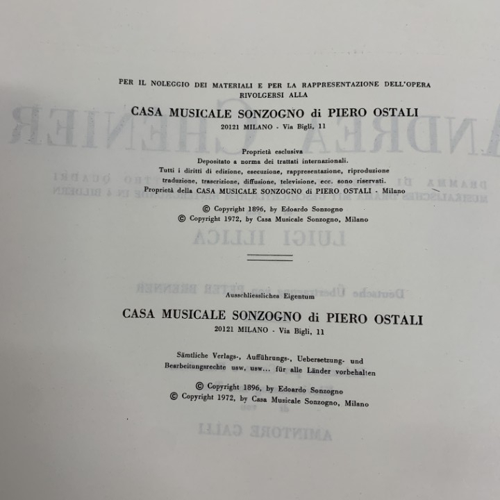 ●01)【同梱不可】Andrea Chenier/Umberto Giordano/Casa Musicale Sonzogno/ウンベルト・ジョルダーノ/輸入楽譜/オペラ/洋書/A
