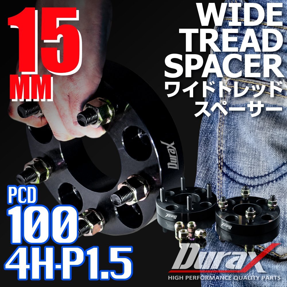 DURAX ワイドトレッドスペーサー 15mm PCD100 4H P1.5 ステッカー付 ブラック 2枚 ホイール スペーサー ワイトレ トヨタ ホンダ ダイハツ