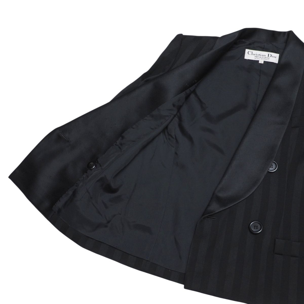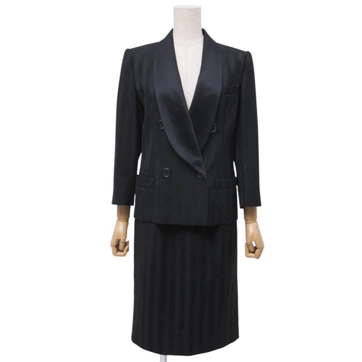 Product name: GR9967☆クリスチャンディオール Christian Dior PRET-A-PORTER セットアップ ストライプ柄 ダブルジャケット+タイトスカート 光沢襟 黒