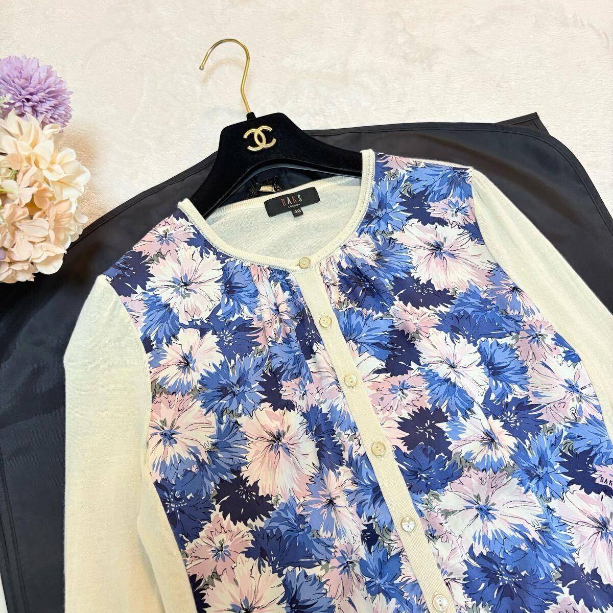 Product name: DAKS ダックス 花柄シルク混 長袖カーディガン 薄手  40サイズ 上品デザイン アイボリー Lサイズ相当 カーディガン