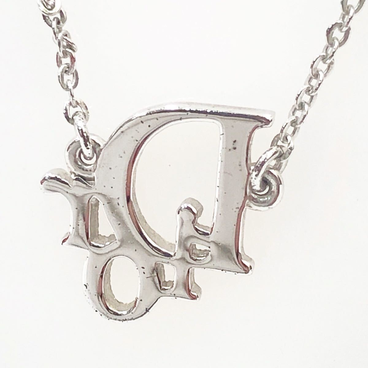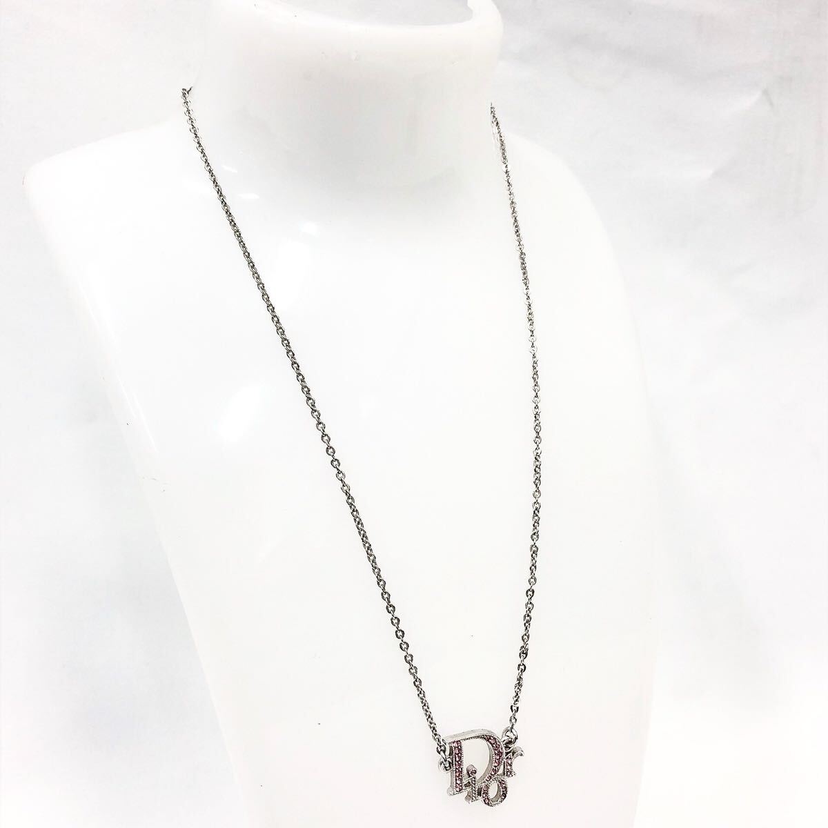 Product name: 正規品 Christian Dior ディオール ネックレス ラインストーン Diorロゴ シルバーカラー 全長約41.5cm 約4g トップ17×17mm