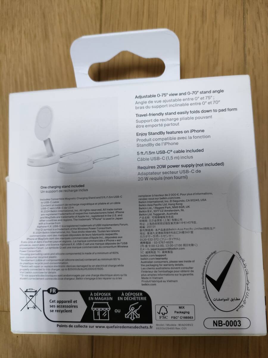 Product name: 【新品未開封】 Belkin Qi2ワイヤレス充電スタンド WIA008btWH Qi2公式認証 iPhone 16/15/14/13/12対応 最大15W ホワイト