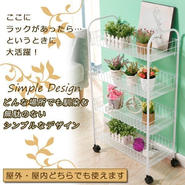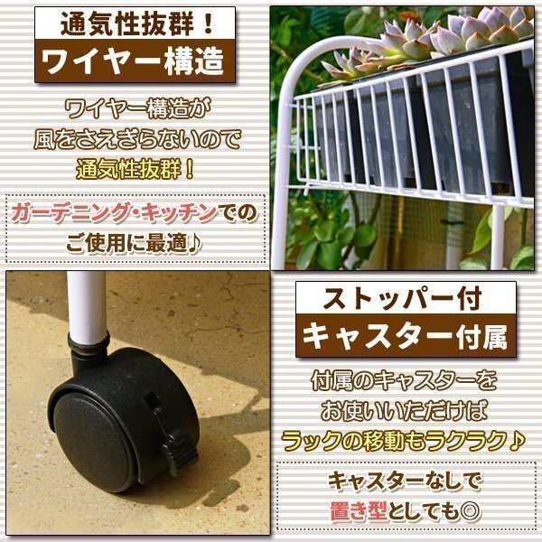Product name: プランターラック ガーデンラック キャスター付き 4段 棚 プランター台 横型 ホワイト 白 花台 屋外 室内 プランタースタンド インテリア