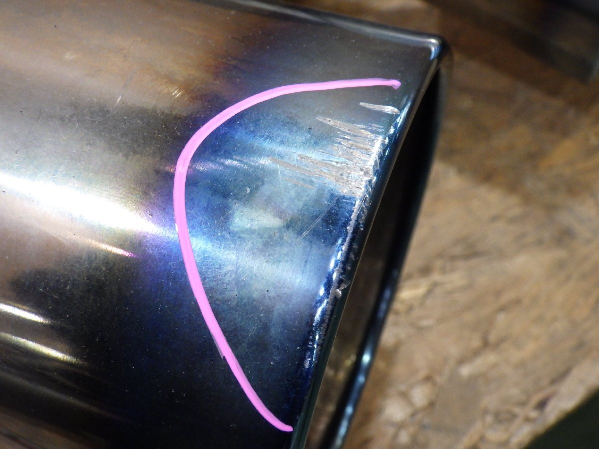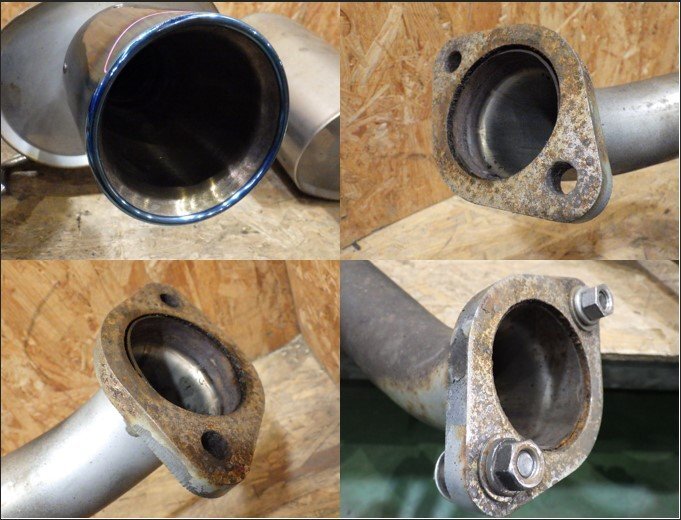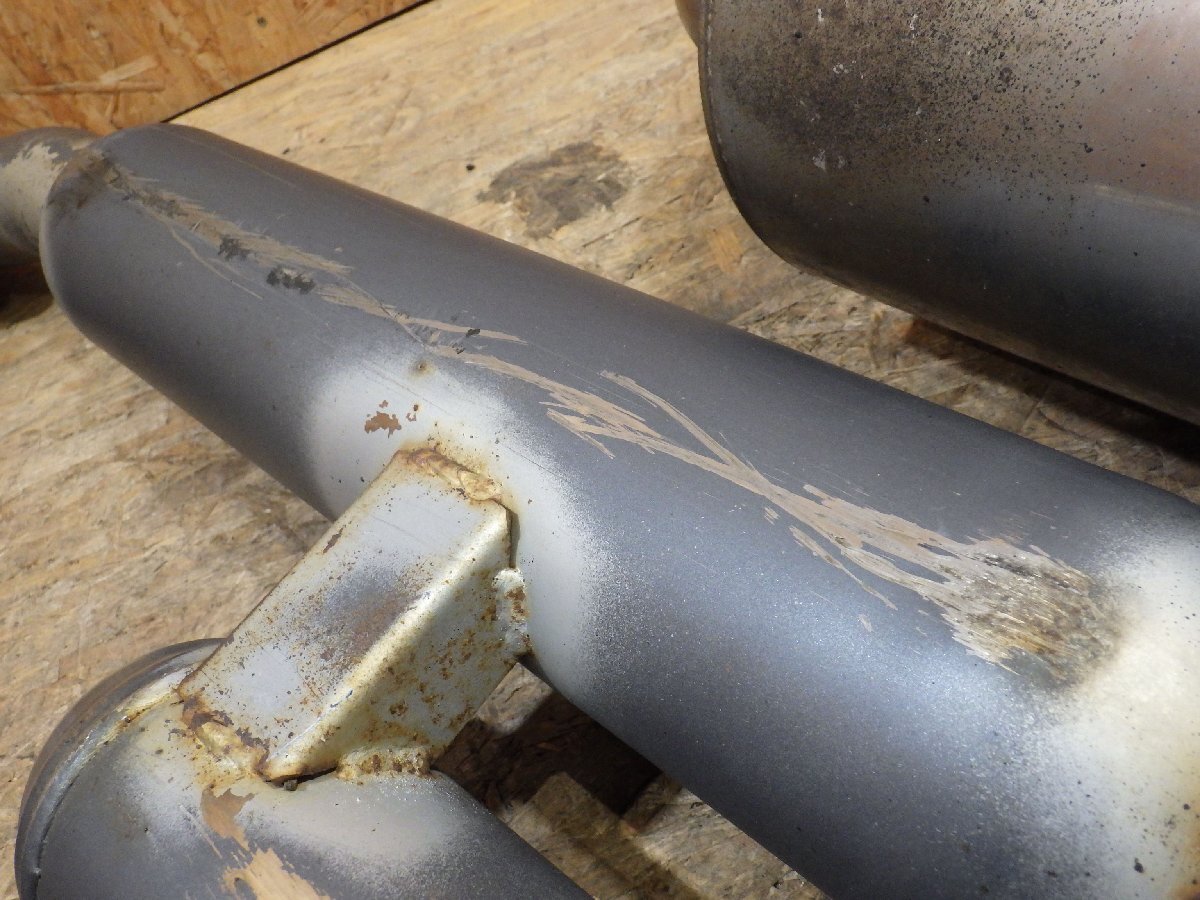テスト済、個人宅不可、取付ボルト6ケ/ナット6ケ/ワッシャー6ケ/スプリングワッシャー6ケ、出口φ100、タイコ:スリキズ45×6cm/18×6cm、出口下スリキズ:4×2 2ケ、タイコ内少水入り、全体:傷&汚れ&サビ、