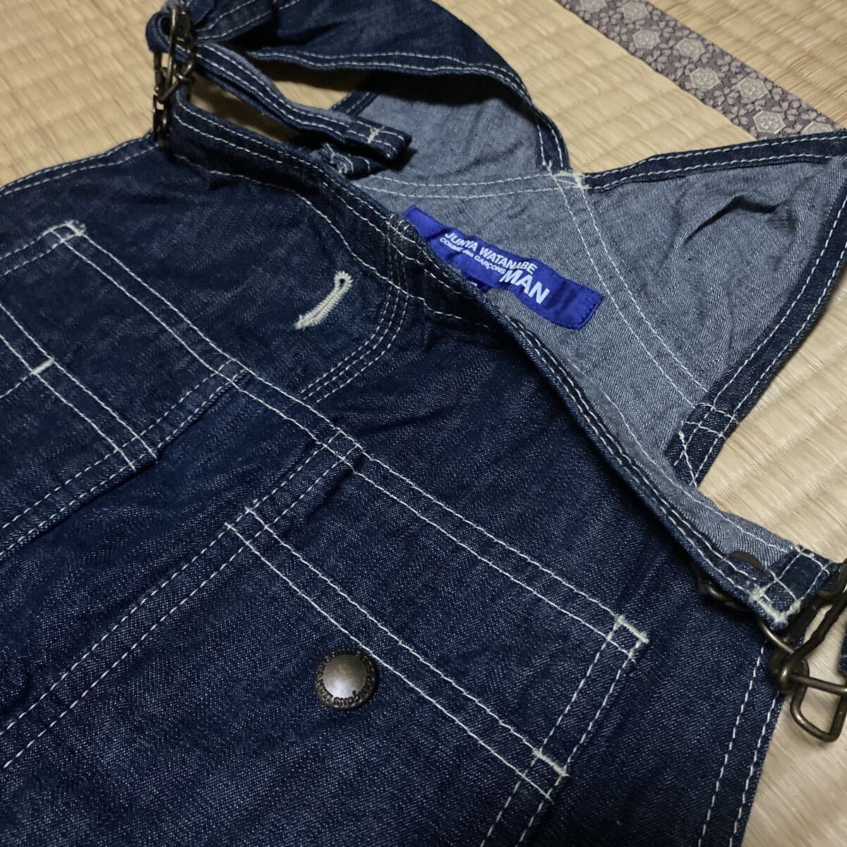 JUNYA WATANABE MAN デニム パンツ ペインターパンツ オーバーオール COMME des GARCONS Denim Pant OVERALL インディゴ 綿麻 美品 S
