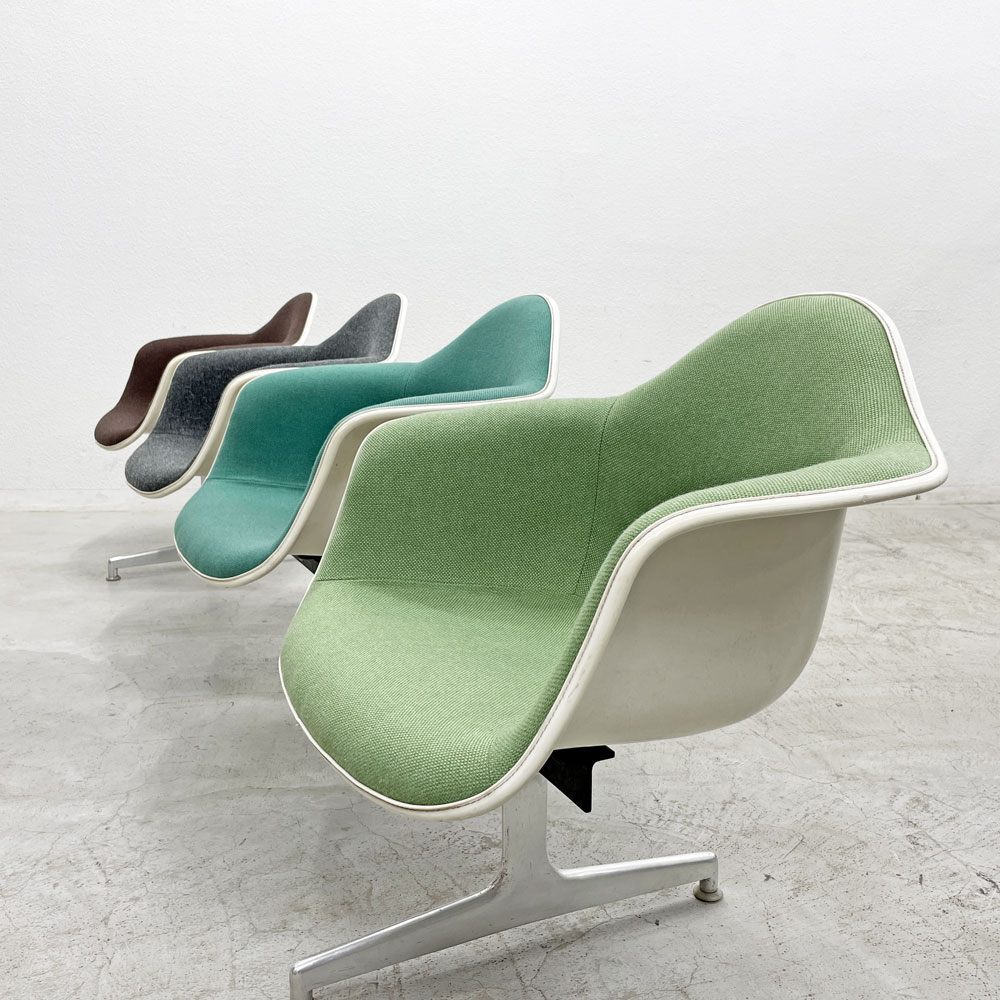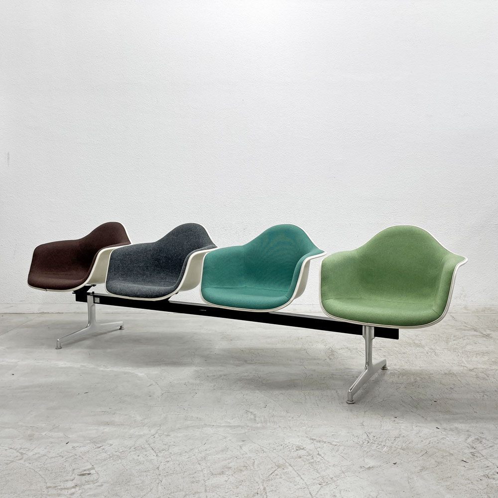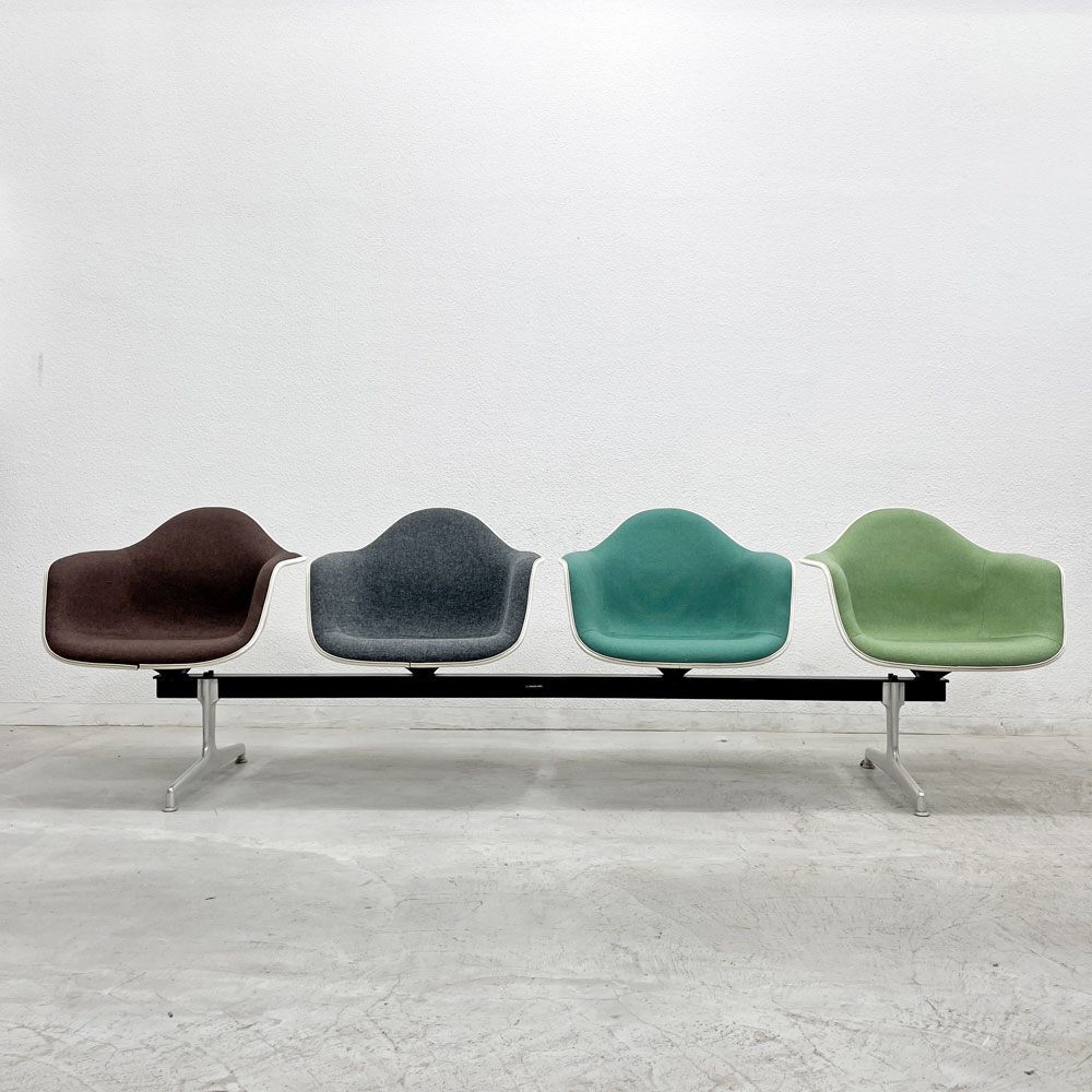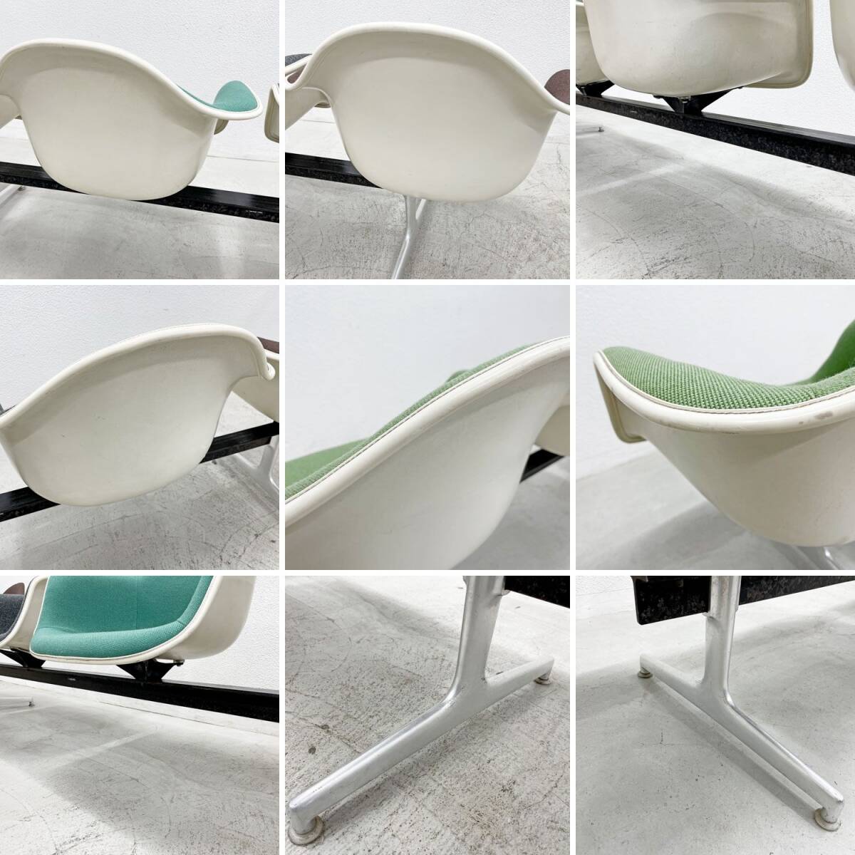 〓 ハーマンミラー Herman Miller ビンテージ エアポートベンチ タンデムシート 4連 アームシェル 2nd ファブリック 新品張替え済 A