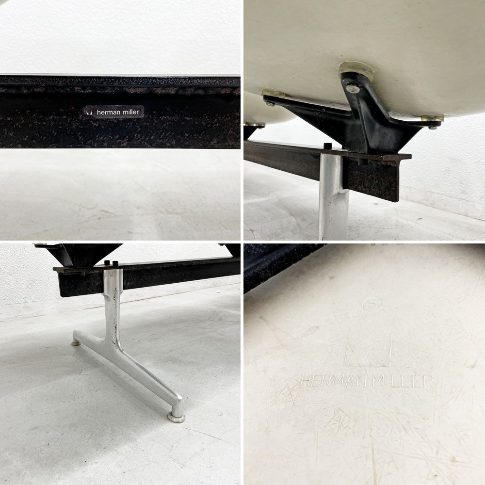 こちらはハーマンミラー社より1960~1970年代頃に、空港やオフィスでの使用を目的として製造された希少なビンテージ『 エアポートベンチ 』になります。別名" タンデムベース "とも呼ばれる特徴的な脚部は、堅牢なアルミバフ( キャストアルミニウム )を使用しています。