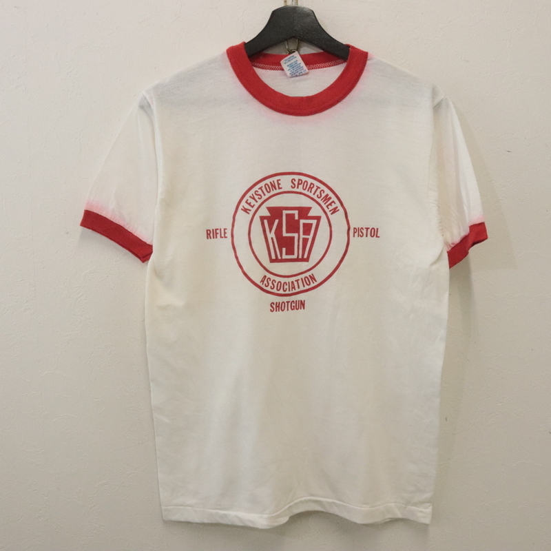 Product name: m36 80sビンテージ MJS 半袖リンガーTシャツ USA製■1980年代製 表記Mサイズ 白 ホワイト KSA アメカジ ストリート 古着 激安 希少 90s 70s