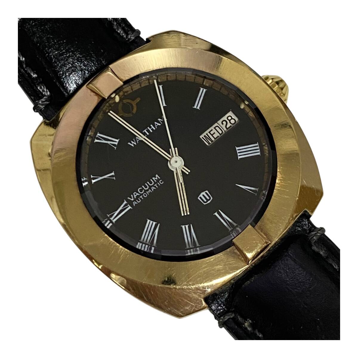 【中古品】WALTHAM ウォルサム VACUUM バキューム 14K 文字盤ブラック オートマチック メンズ 腕時計 A96120RD