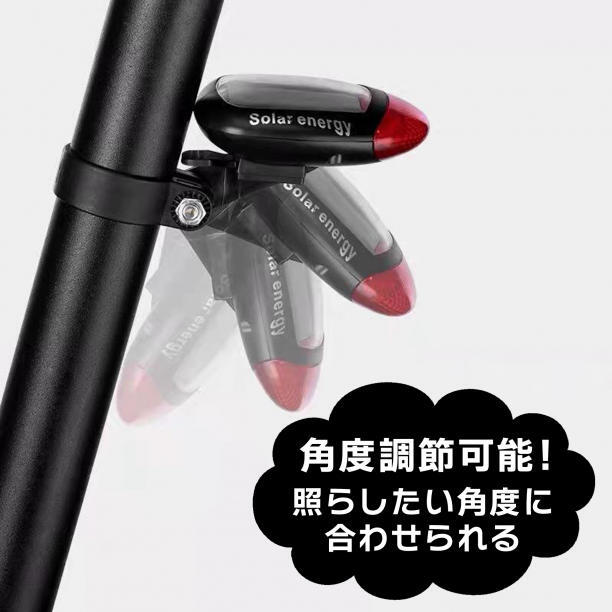 自転車 テールライト ソーラー 充電式 LED リア ライト ロードバイク 防水