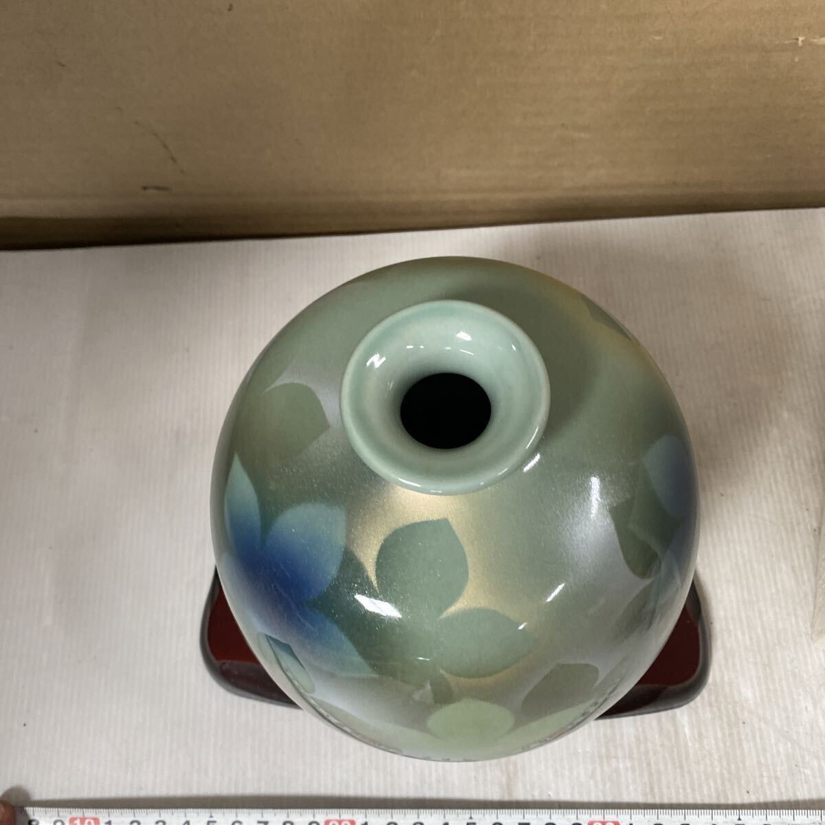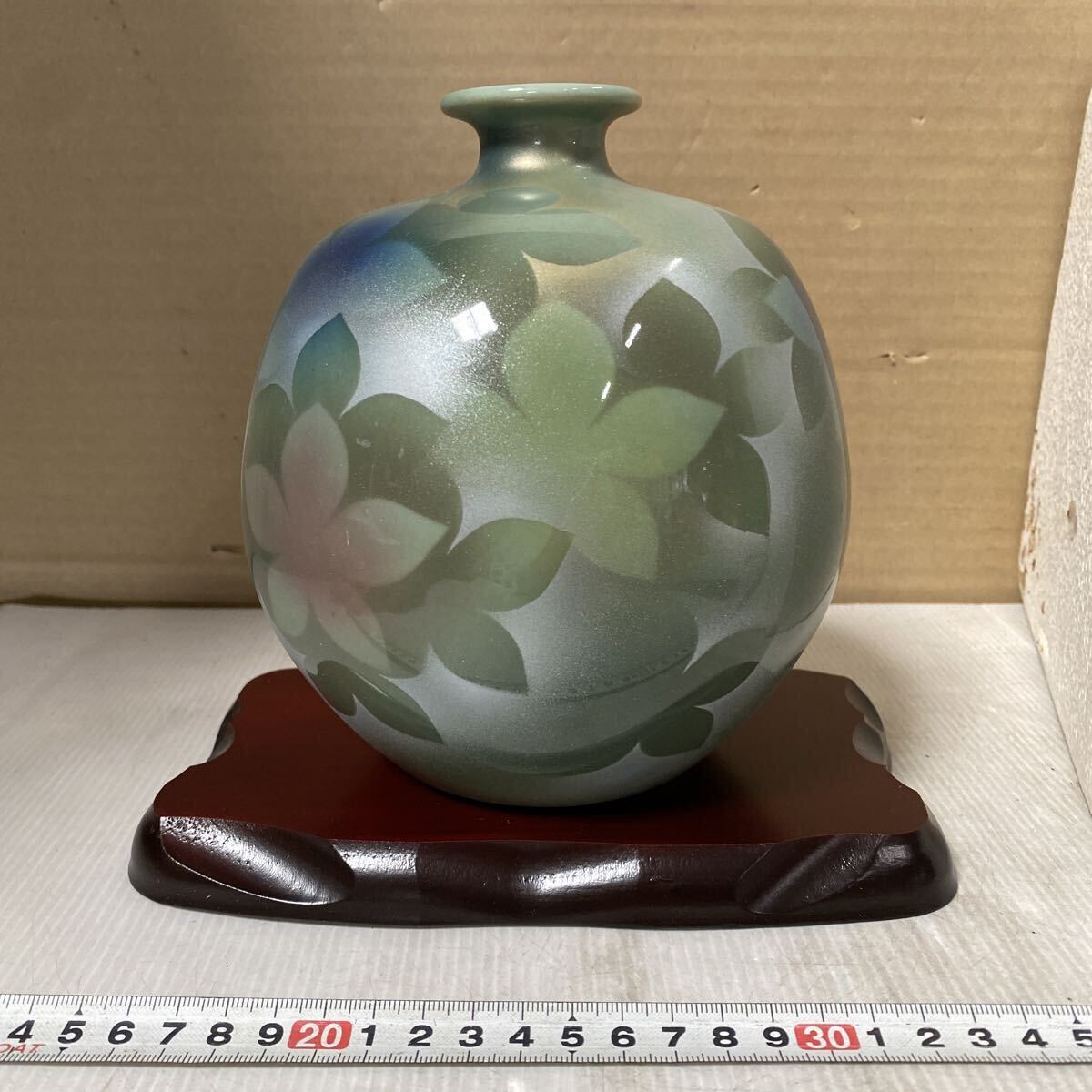 Product name: 伝統工芸 九谷焼 壺 一輪挿し 花瓶 飾り台付き 未使用長期保管 撮影のため開梱 和風雑貨 和風置物 箱に汚れあり 中身綺麗