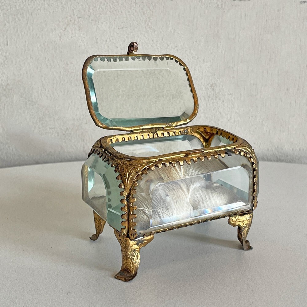 ■ フランスビンテージ france vintage ジュエリーケース 真鍮×ガラス レクタングル 小物入れ アンティーク