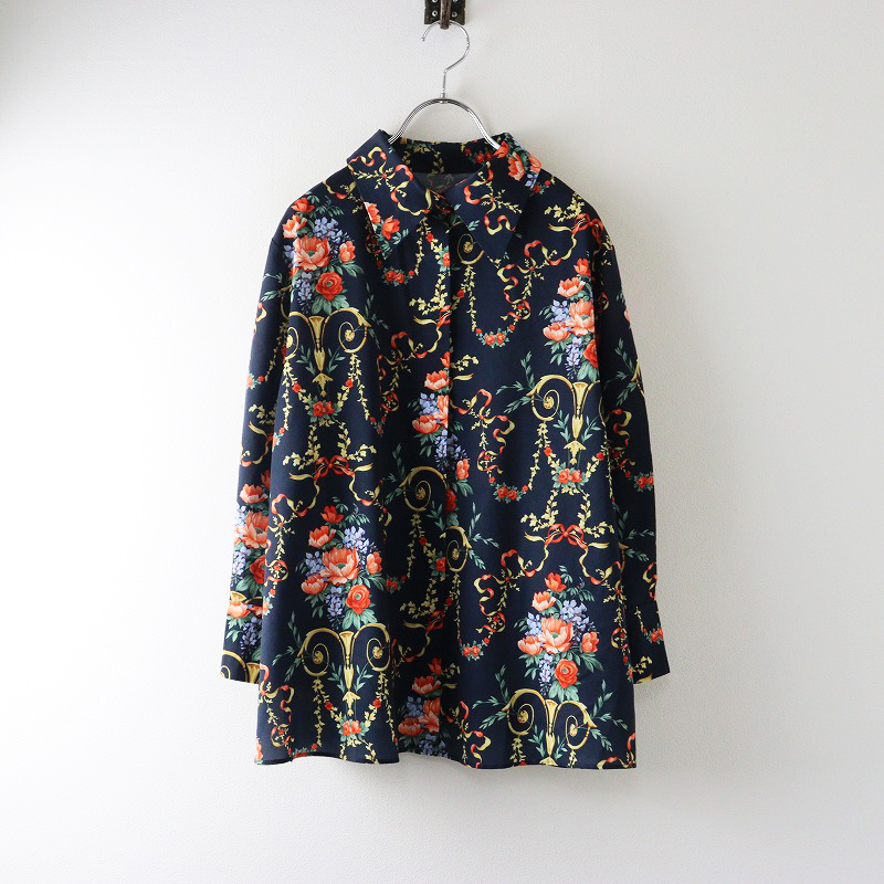 Product name: 2024SS ロイスクレヨン Lois CRAYON ブーケリボン シャツ M|ネイビー ブラウス 長袖 カットソー 比翼ボタン【2400014589641】