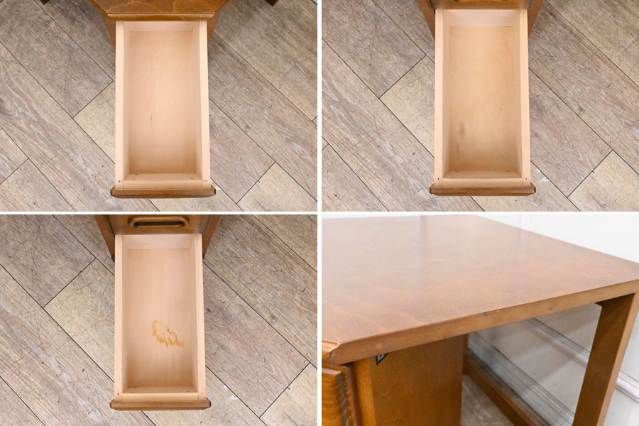 前面上下フレームにキズ、引出内シミ、天板縁に塗装ハガレ、その他使用キズ、打コン、汚れ等ありますが、中古品としては状態良好です。