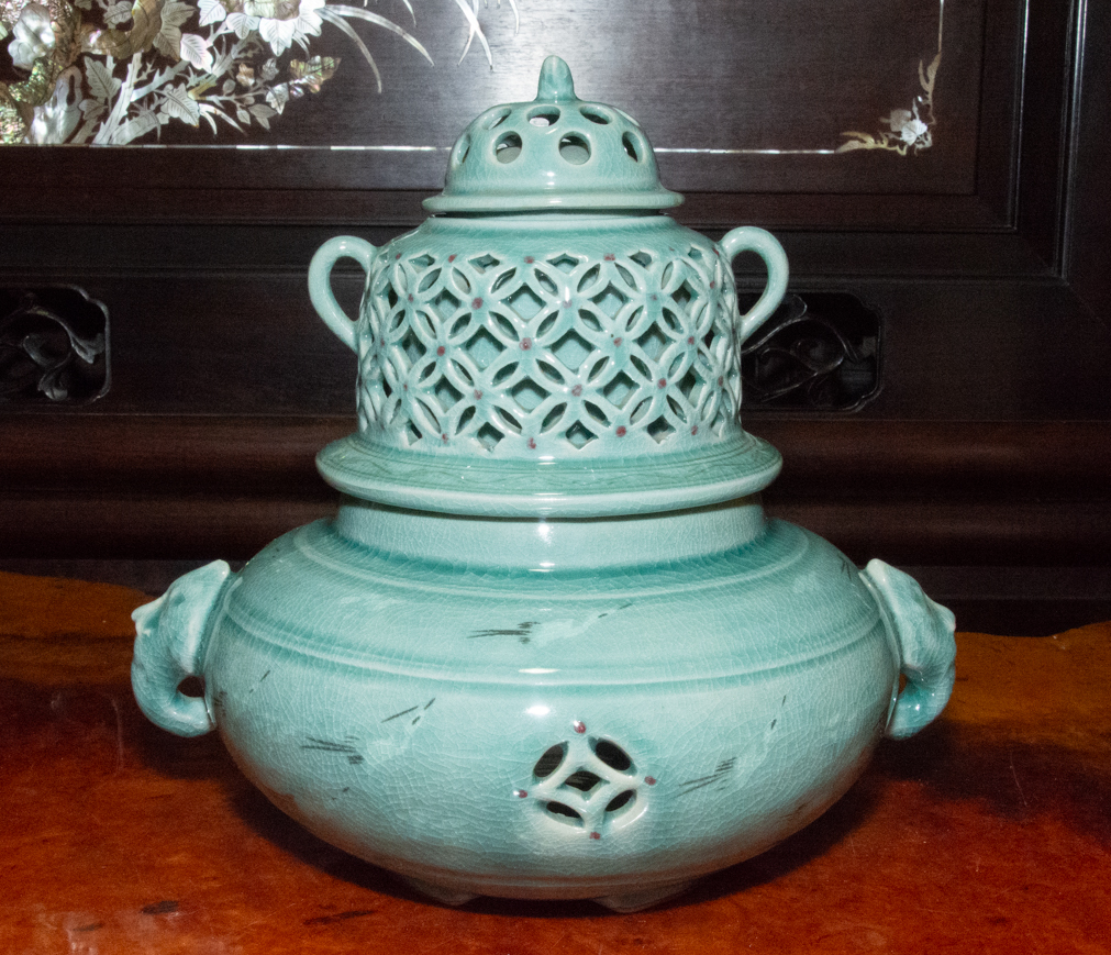 Product name: 銀光 高麗青磁 風炉釜 未使用品 在銘 木箱入 茶道具 磁器 茶釜