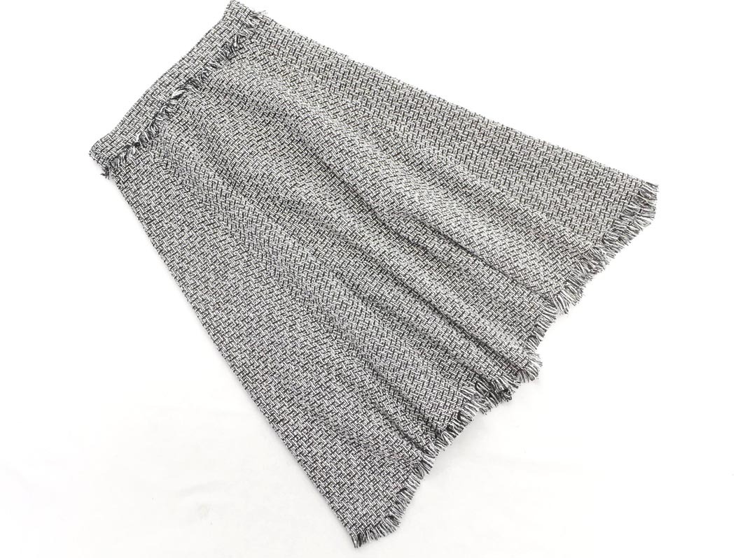 QUEENS COURT クイーンズコート ツイード ロング スカート size2/白x黒 ◇■ ☆ fia5 レディース