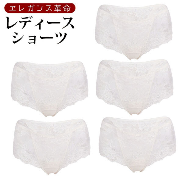 Product name: 送料185円■be420■(250819)▼レディース エレガンス革命 ショーツ XL ホワイト(725540) 5点【シンオク】【クリックポスト発送】