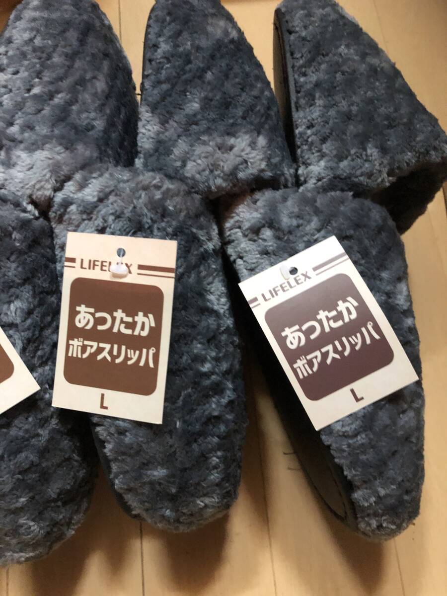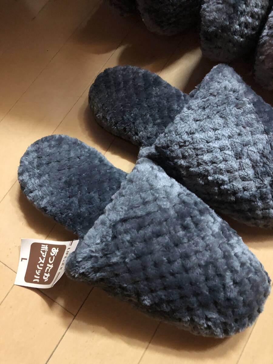 未使用品です。あったかボアスリッパです。Lサイズ9足です、グレー系です。自宅保管品ですので神経質な方は御遠慮下さいね。ノークレームノーリターンでお願い致します。その他いろいろ出品していますので見て下さいね。
