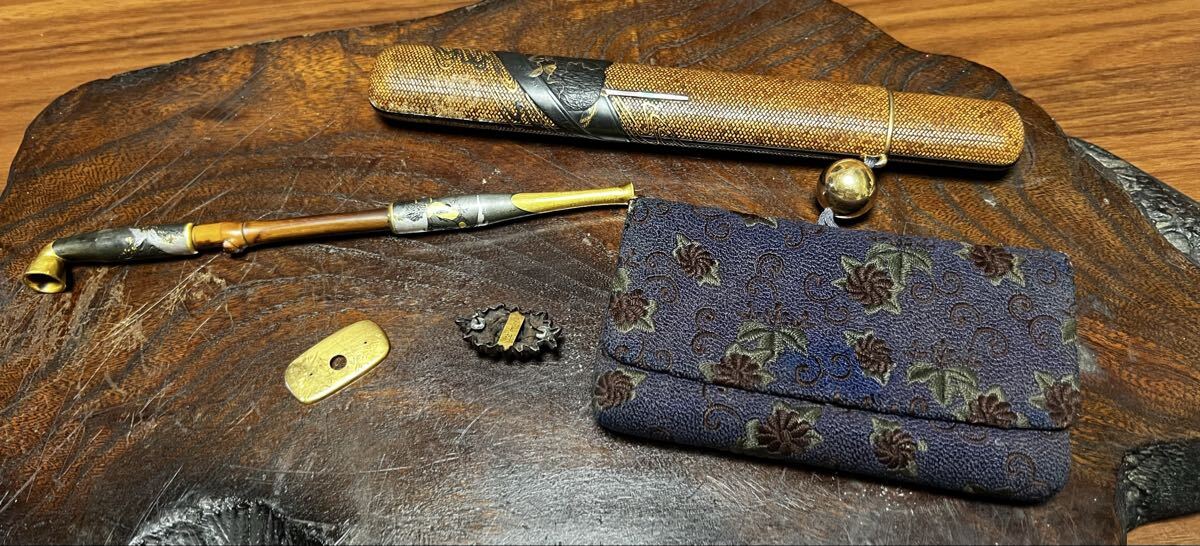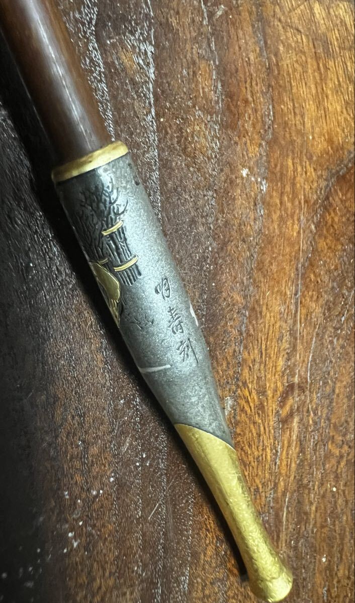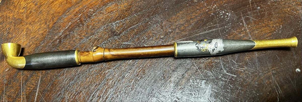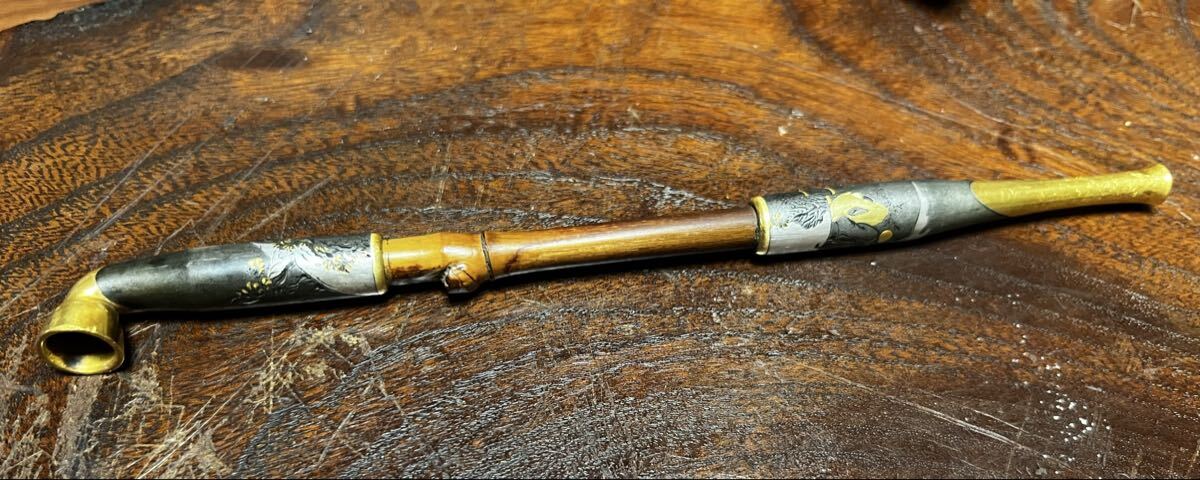 こちらは明治時代に作られたと思われる彫金の美しい煙管(キセル)です。