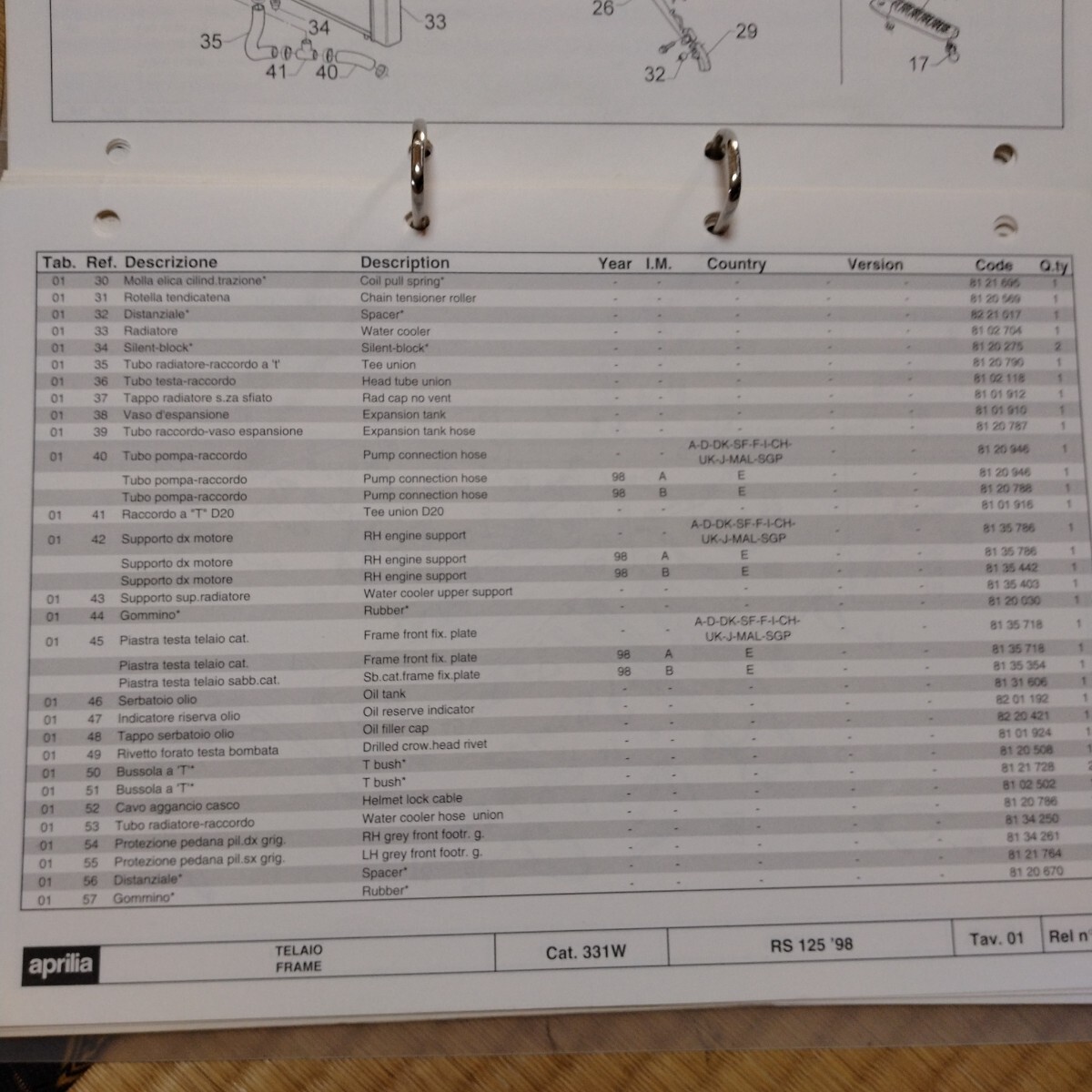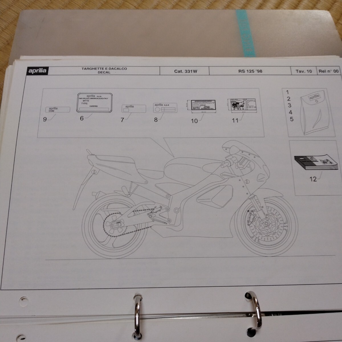 Product name: アプリリアRS125 パーツリスト サービスマニュアル