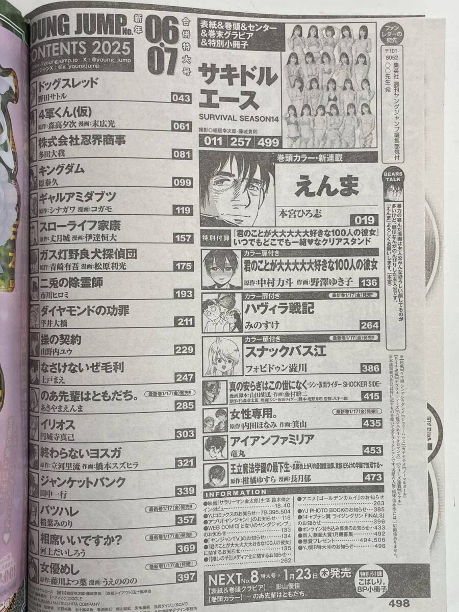 週刊ヤングジャンプ 2025年6・7号 サキドルエース/き/クリアスタンド付き付録つき