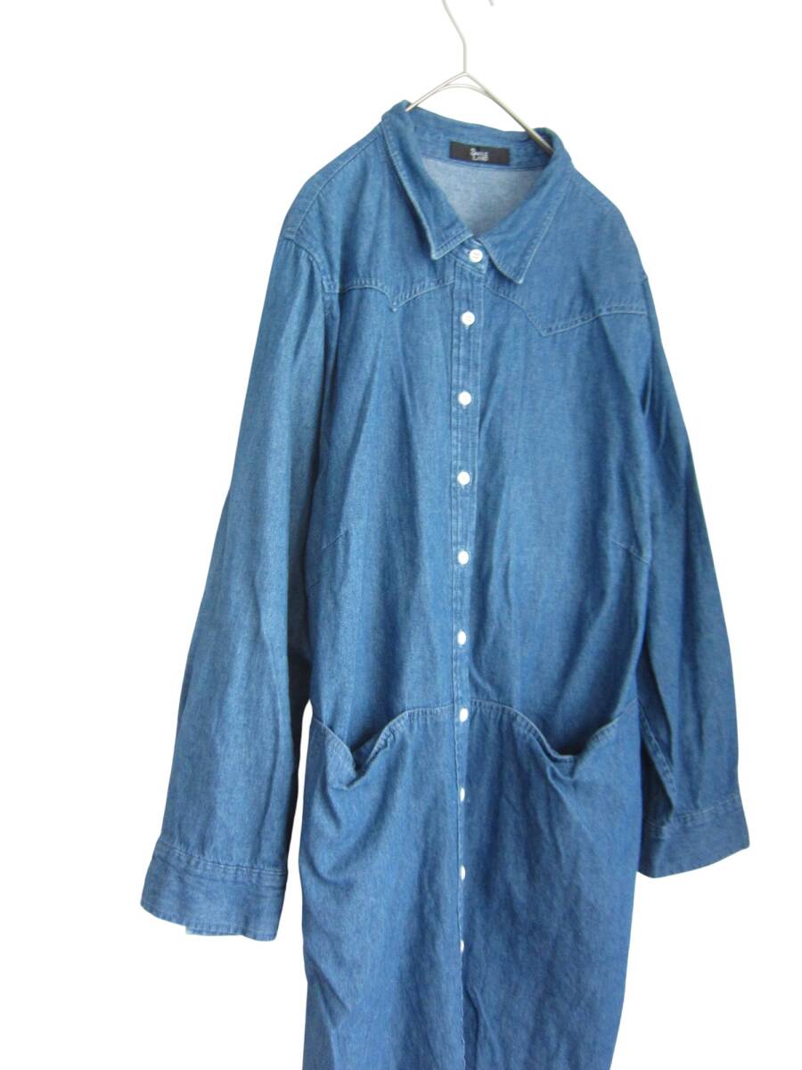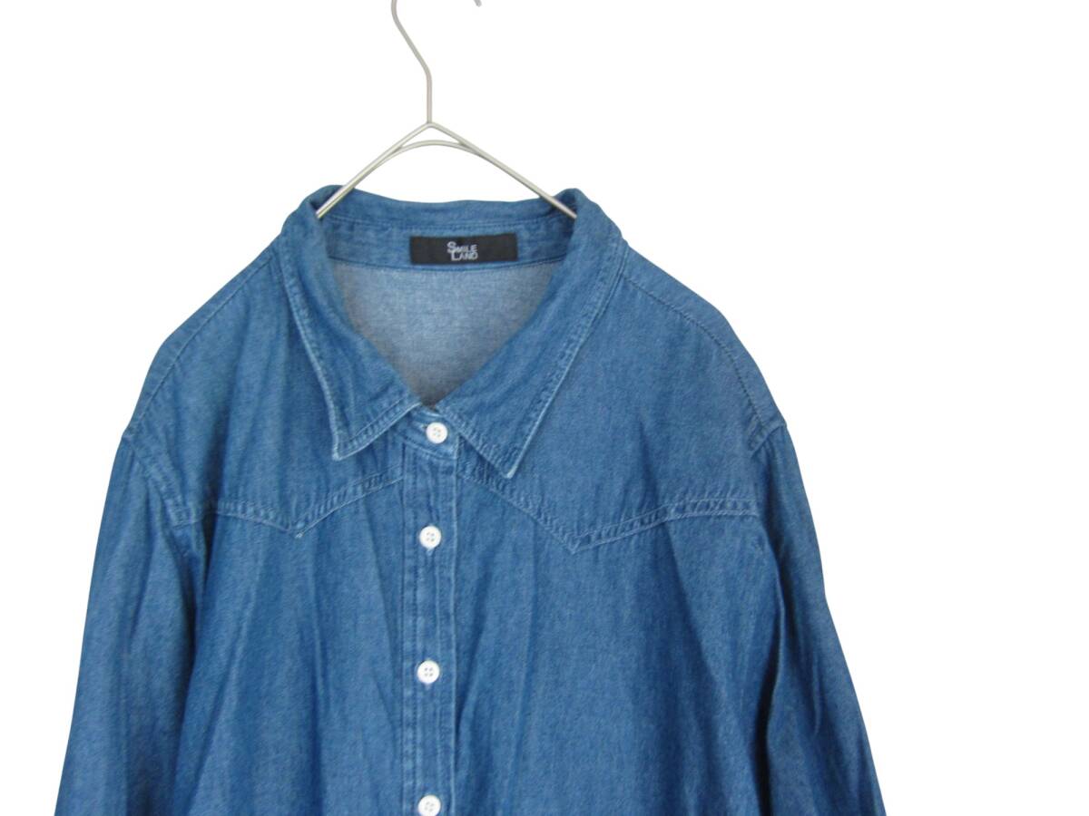 Product name: 送料無料 W100 美品 【5L】 ブルー シャツ デニム ワンピース 大きいサイズ ゆうパケットプラス 長袖