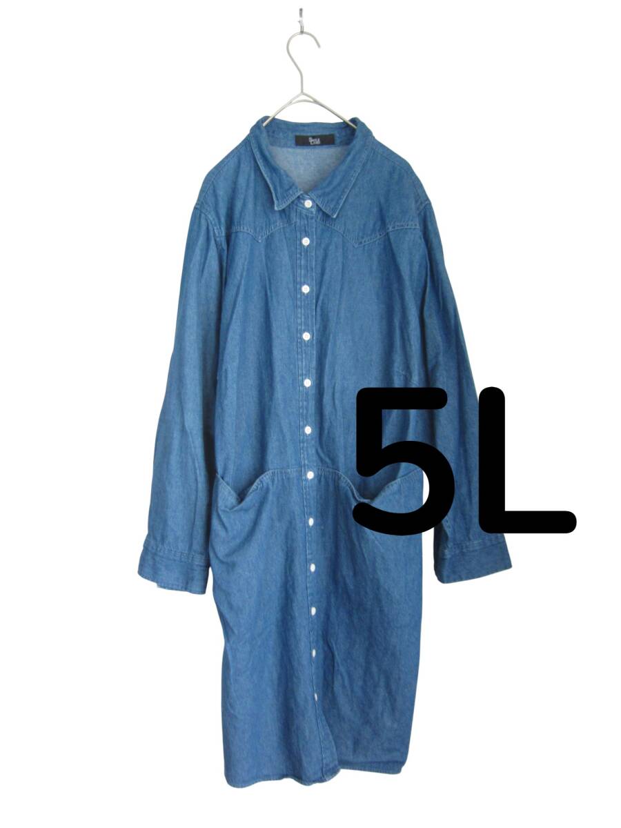 送料無料 W100 美品 【5L】 ブルー シャツ デニム ワンピース 大きいサイズ ゆうパケットプラス 長袖