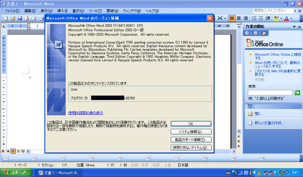 ・Microsoft Office2003 Pro (Word,Exce、Outlook、Powerpoint等)ライセンス認証済