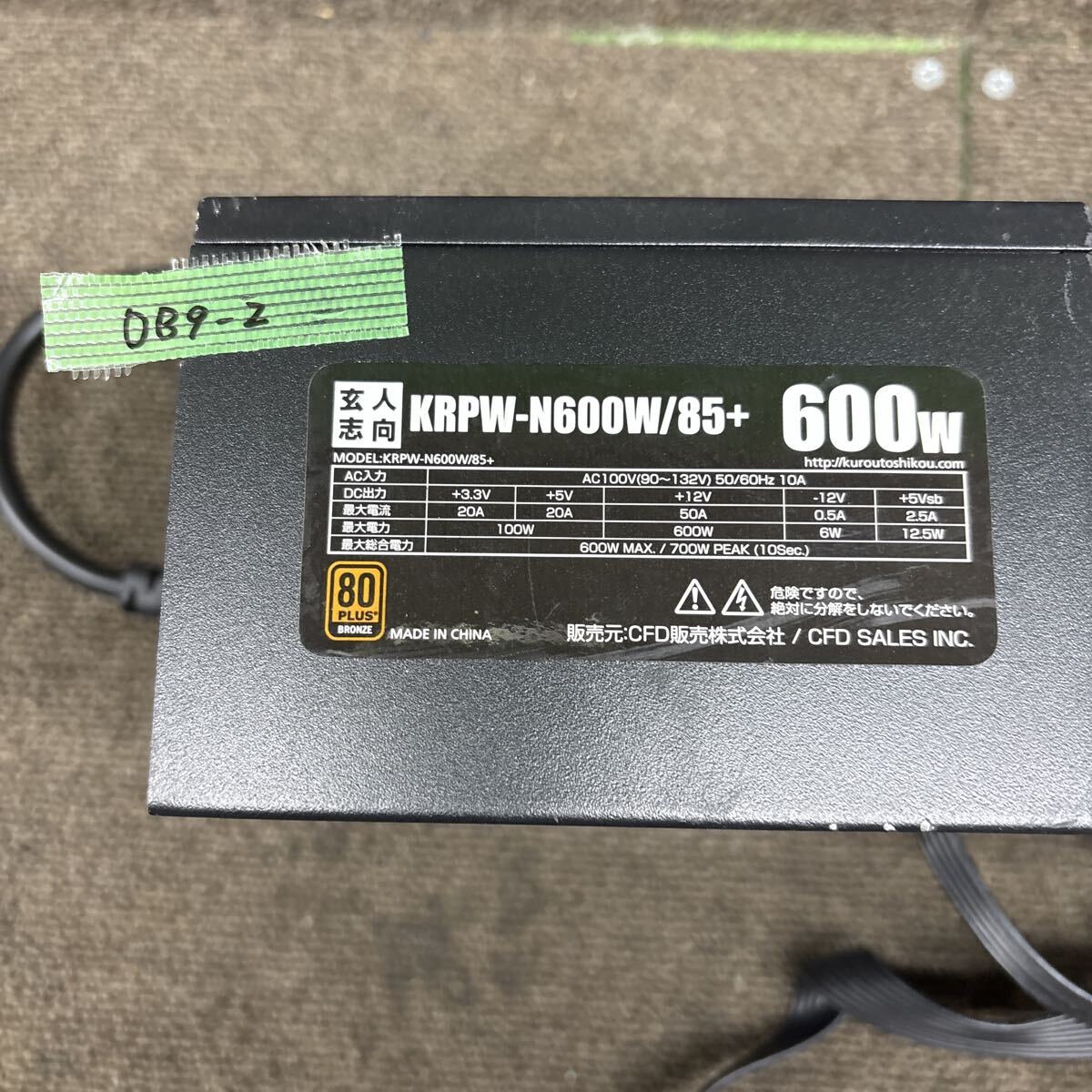 Product name: DB9-2 激安 PC 電源BOX 玄人志向 KRPW-N600W/85+ 600W 80PLUS BRONZE 電源ユニット 電圧確認済み 中古品