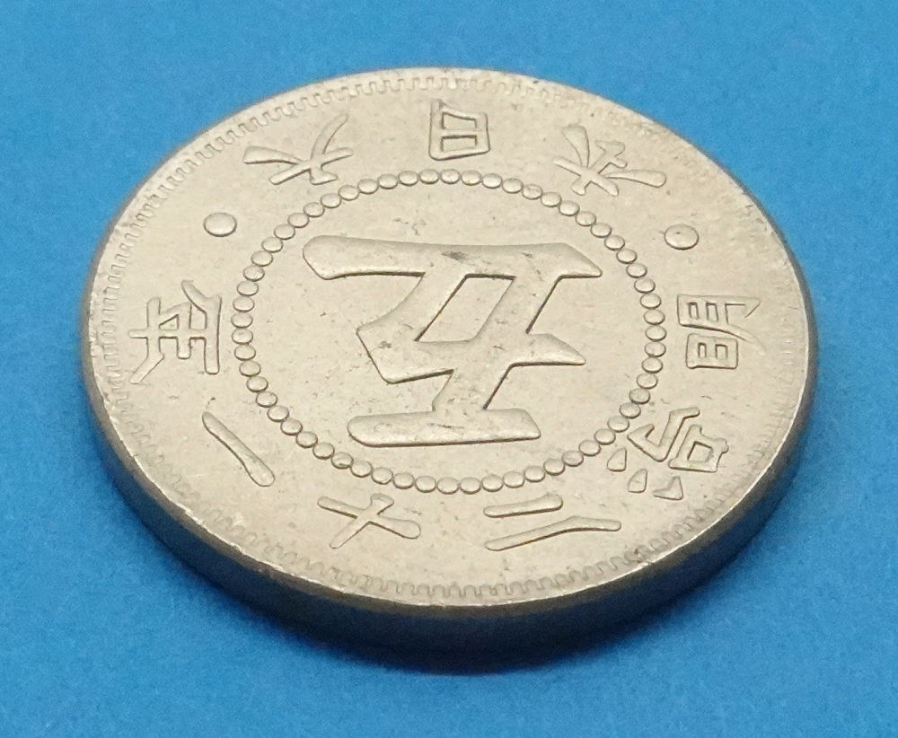 明治21年5銭白銅貨(試鋳)のレプリカです。