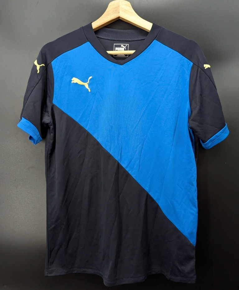 4379C 送料185円♪ PUMA プーマ メンズ 速乾生地 ブラックxブルー ゴールド 刺しゅうロゴ 半袖 スポーツ Tシャツ Mサイズ