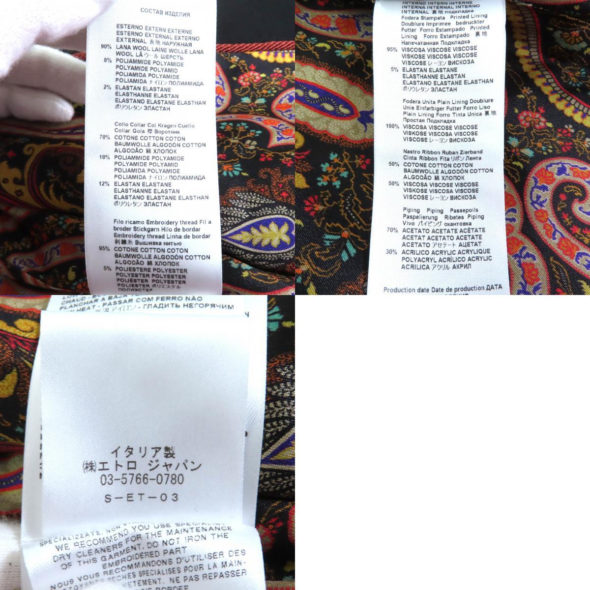 Product name: 極美品△ETRO エトロ ウール 裏地ペイズリー柄 エンブロイダリーデザイン ノーカラー ロング コート ブラック 38 伊製 正規品 レディース