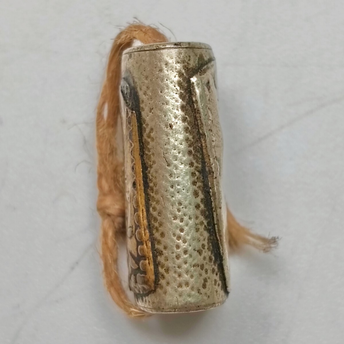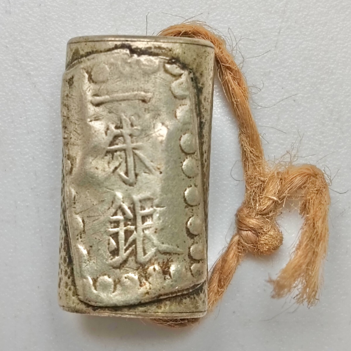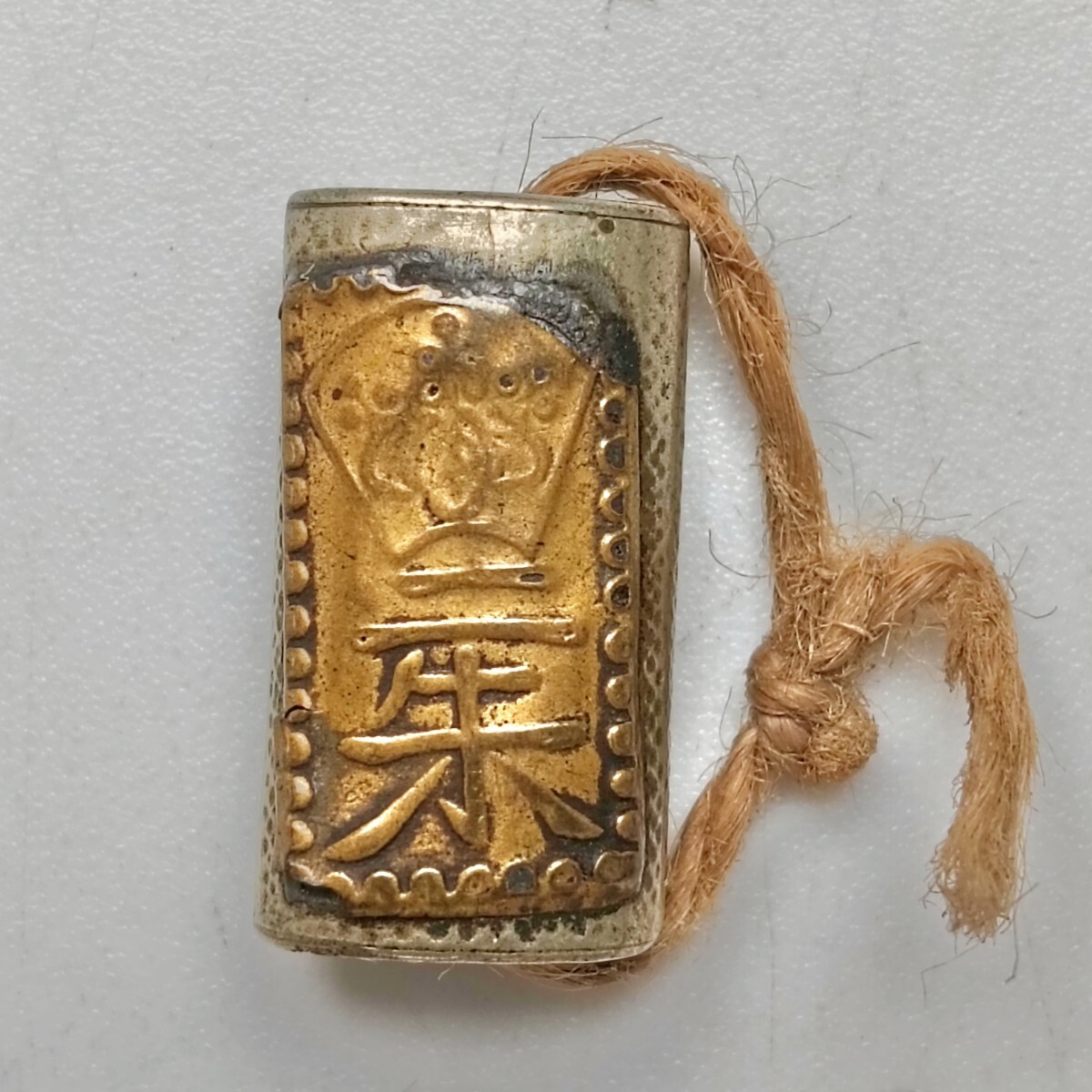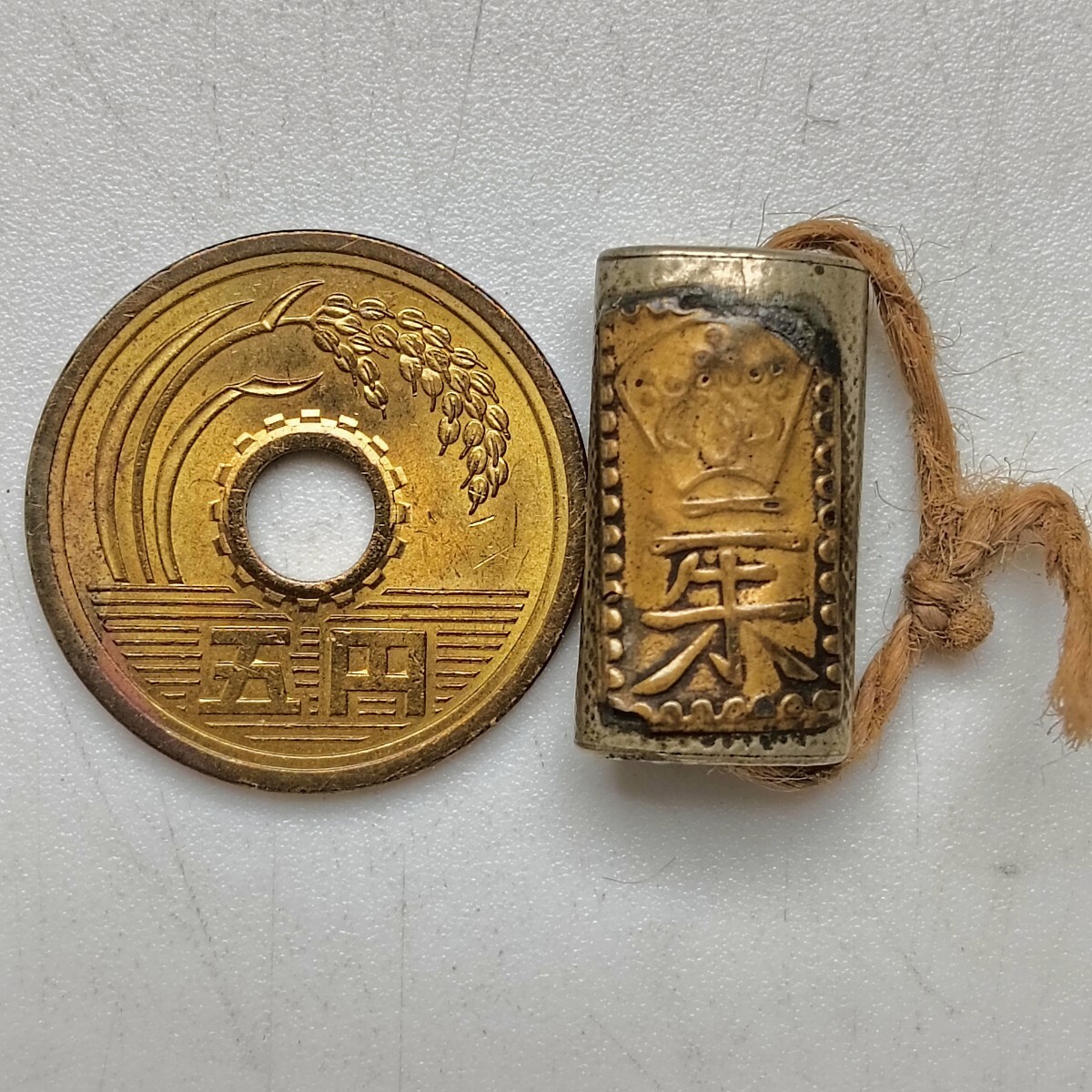 【A4131】時代緒締玉 一朱銀 二朱金 提げ物 印籠 根付金工 胴乱 喫煙具 骨董品 アンティーク 長さ約18.8mm 重さ約3.5g