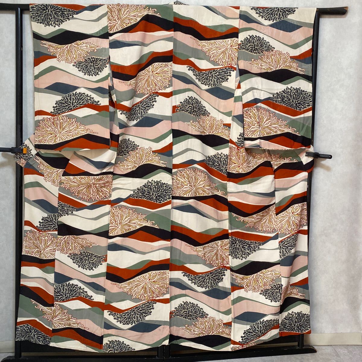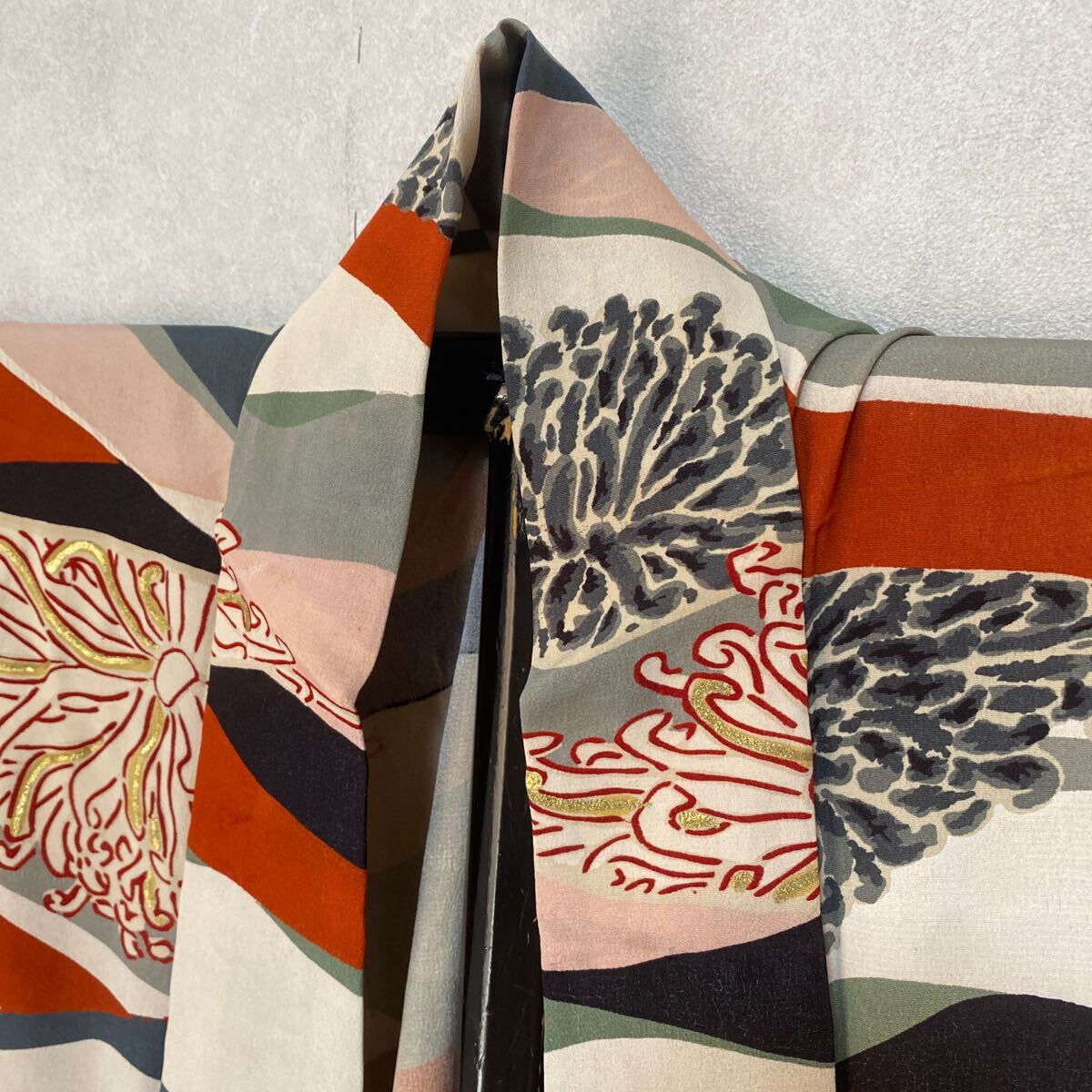 Product name: アンティーク 着物 小紋 正絹 白地 カラフル花 金彩 昭和レトロ 大正ロマン モダン 和洋折衷コーデ リメイク 25こ10-6s