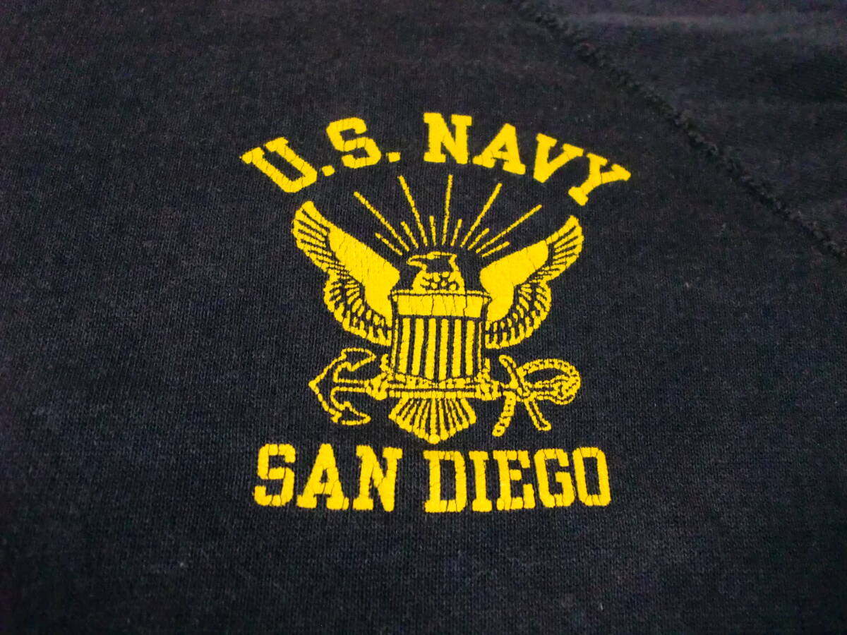 70s80s U.S.NAVY ベルバシーンボディ スウェット USA製 紺 トレーナー アーミー ミリタリー SANDIEGO ヴィンテージ velva sheen