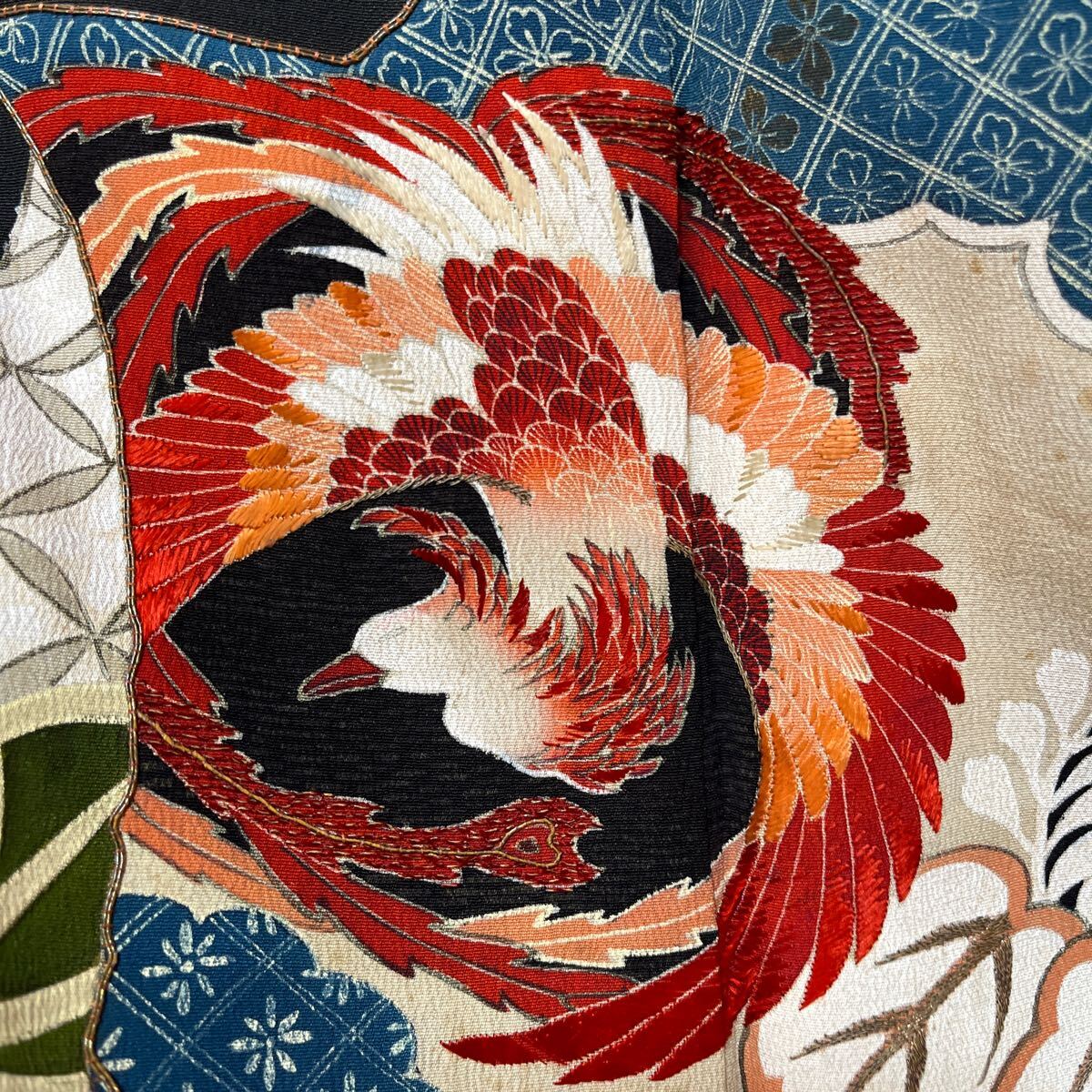Product name: アンティーク 着物 黒留袖 刺繍 鶴 五つ紋 正絹 昭和レトロ 大正ロマン モダン 和洋折衷コーデ リメイク く27-11k