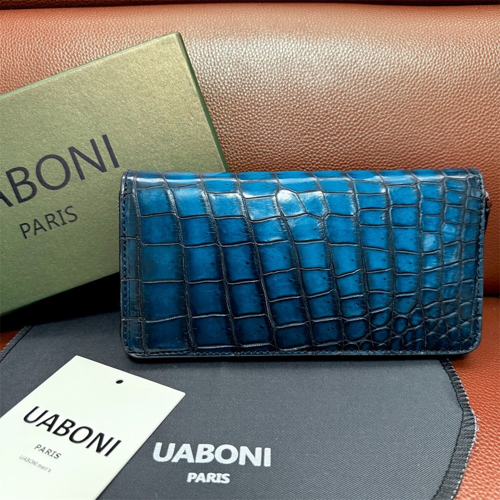 希少 限定EU製&定価68万◆UABONI*アリゲーター・ラウンドファスナー長財布◆手染 パティーヌ レザー クロコ ウォレット ベルルッティ