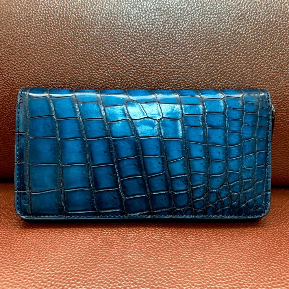 極上の素材感を誇る最高級アメリカアリゲーターを独創的な手染めパティーヌで仕上げられたブランドならではの逸品。