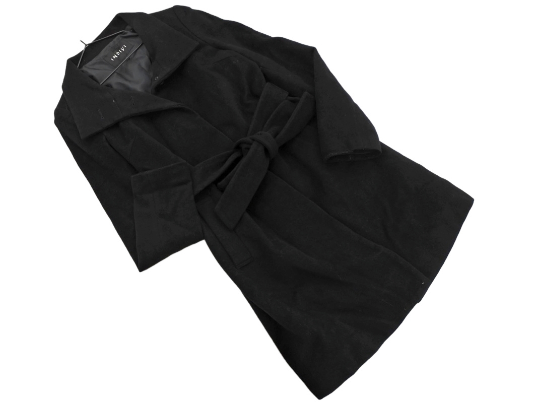 INDIVI インディヴィ カシミヤ混 スタンドカラー コート size40/黒 ◇■ ☆ fjb6 レディース